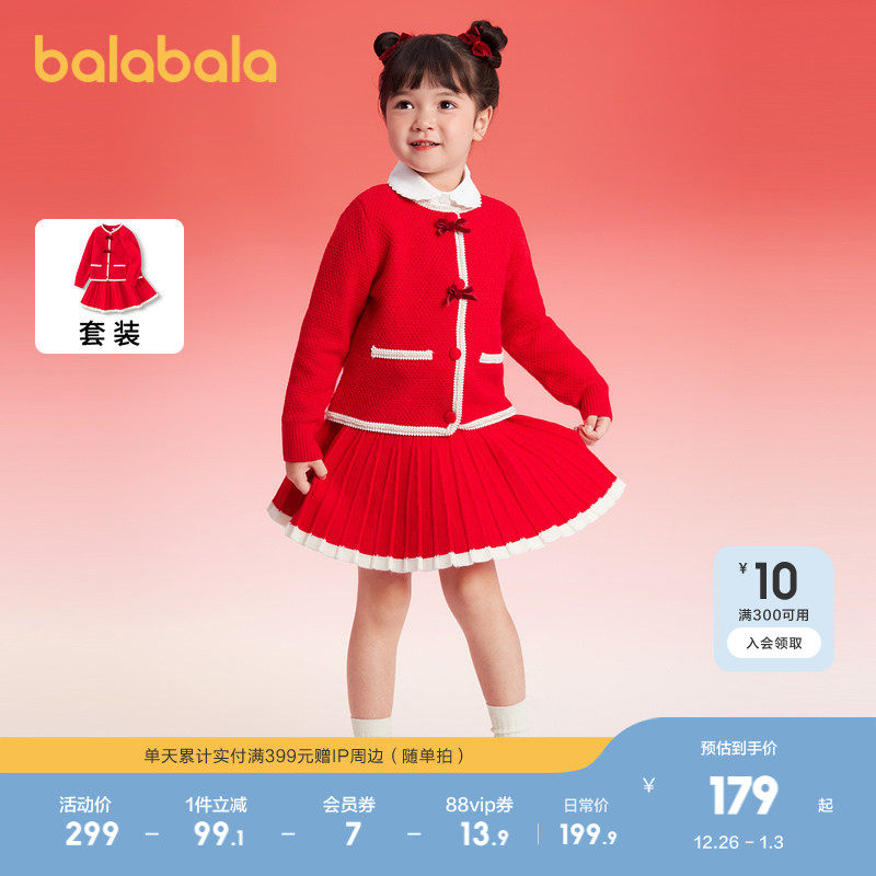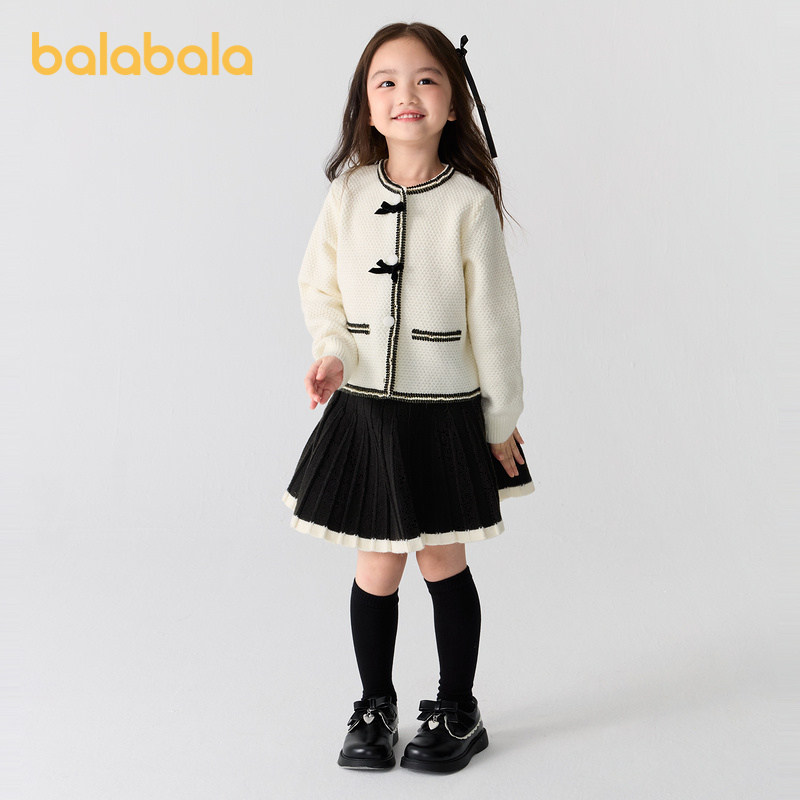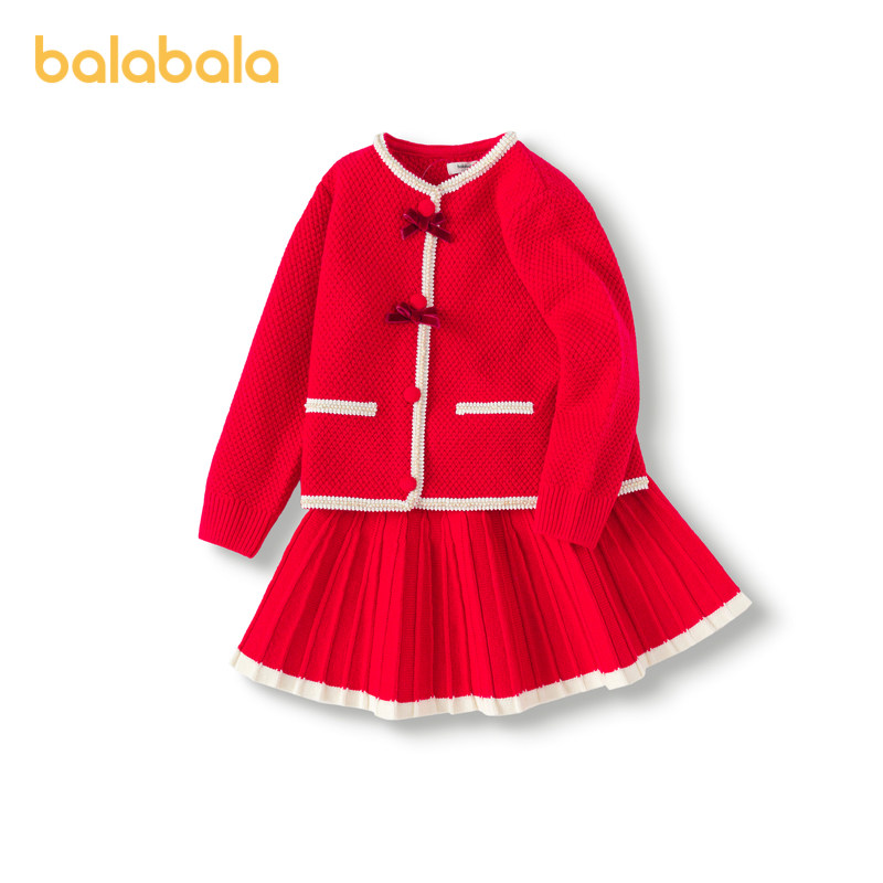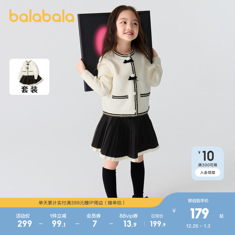 巴拉巴拉童装儿童套装女童秋冬装加绒新中式两件套小香风洋气