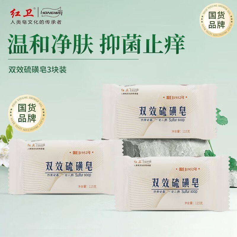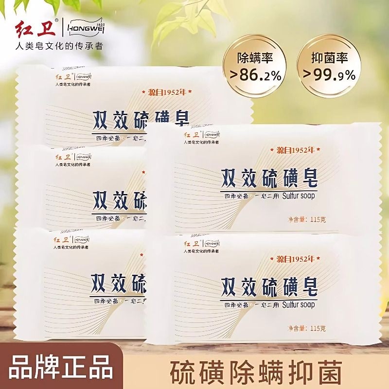 红卫国货抑菌双效香皂正品硫磺肥皂滋润沐浴清洁除螨止痒洗脸洗澡