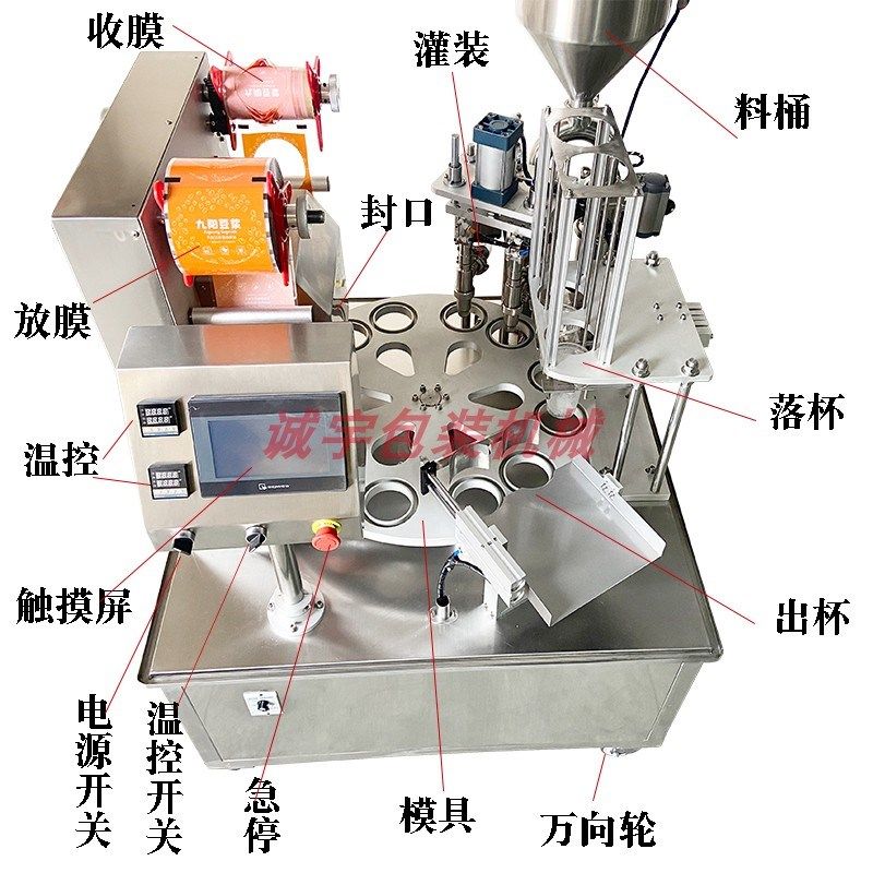 全自动杯装豆浆酱料酸奶灌装封口机果冻绿豆沙果汁连续灌装封杯机