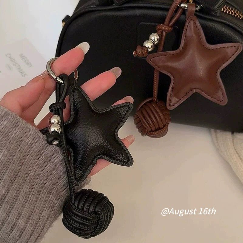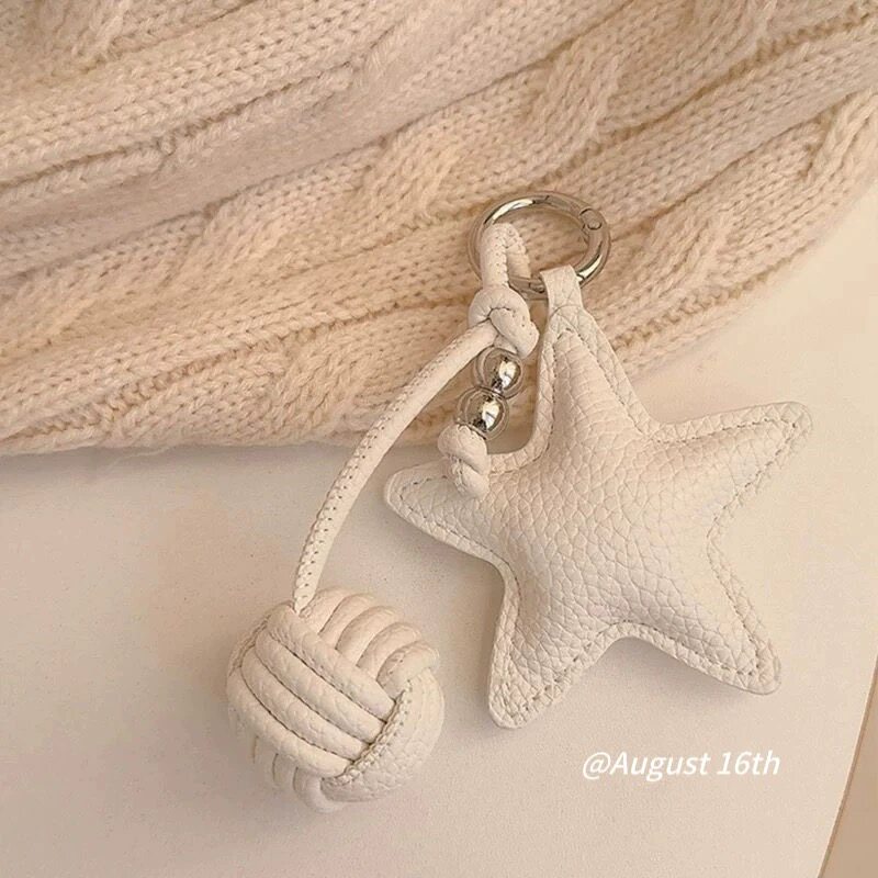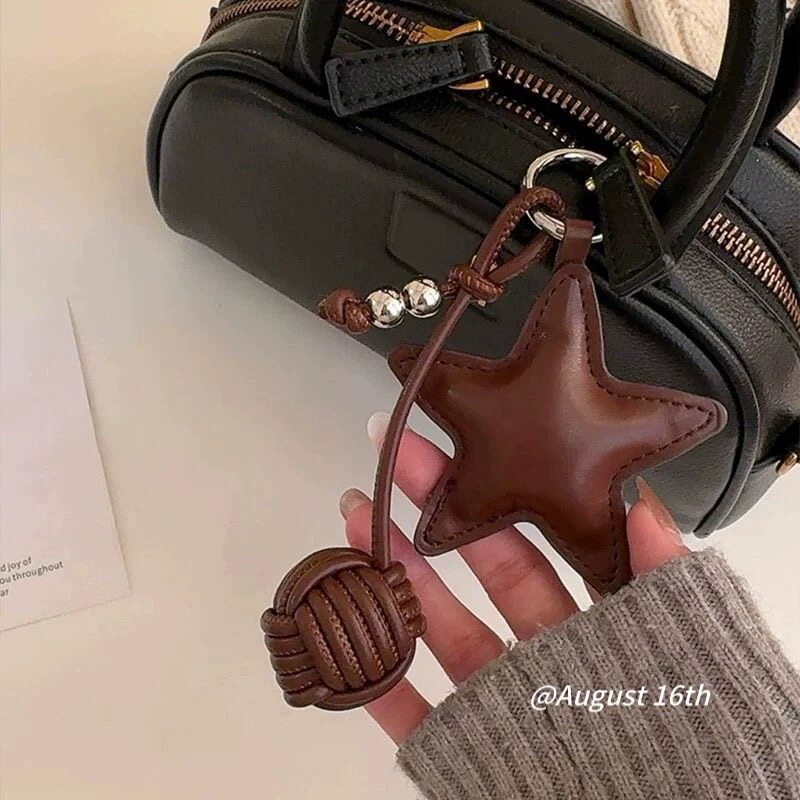 质感皮革星星手工球miu系包包挂件通勤简约复古钥匙扣钢珠挂饰ins