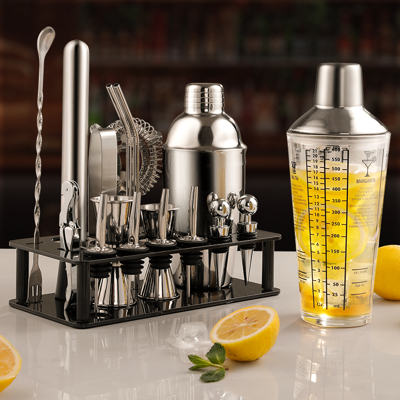 不锈钢调酒器玻璃雪克杯鸡尾酒摇酒壶套装调酒杯手摇工具入门一套