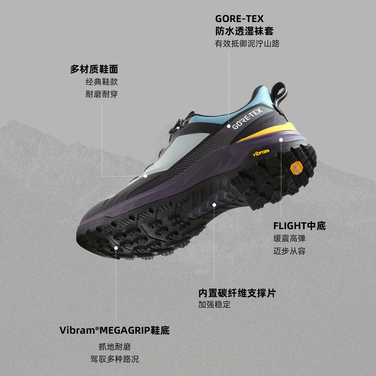 探路者专业徒步鞋新款GORE-TEX防水VIBRAM防滑耐磨轻量化登山鞋