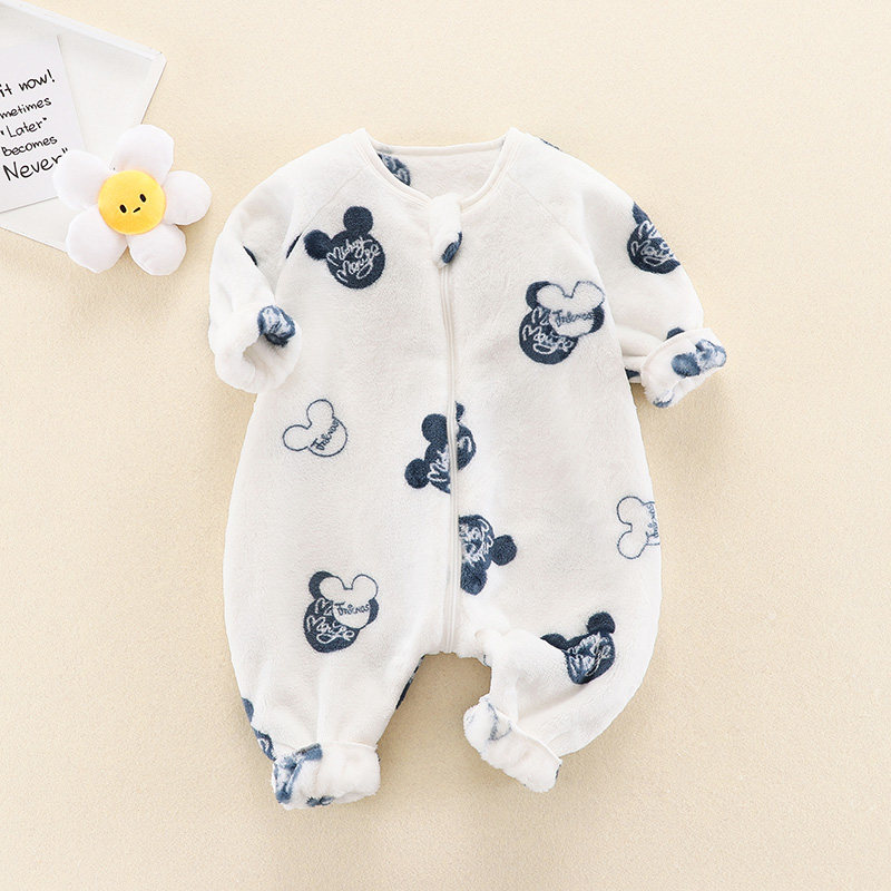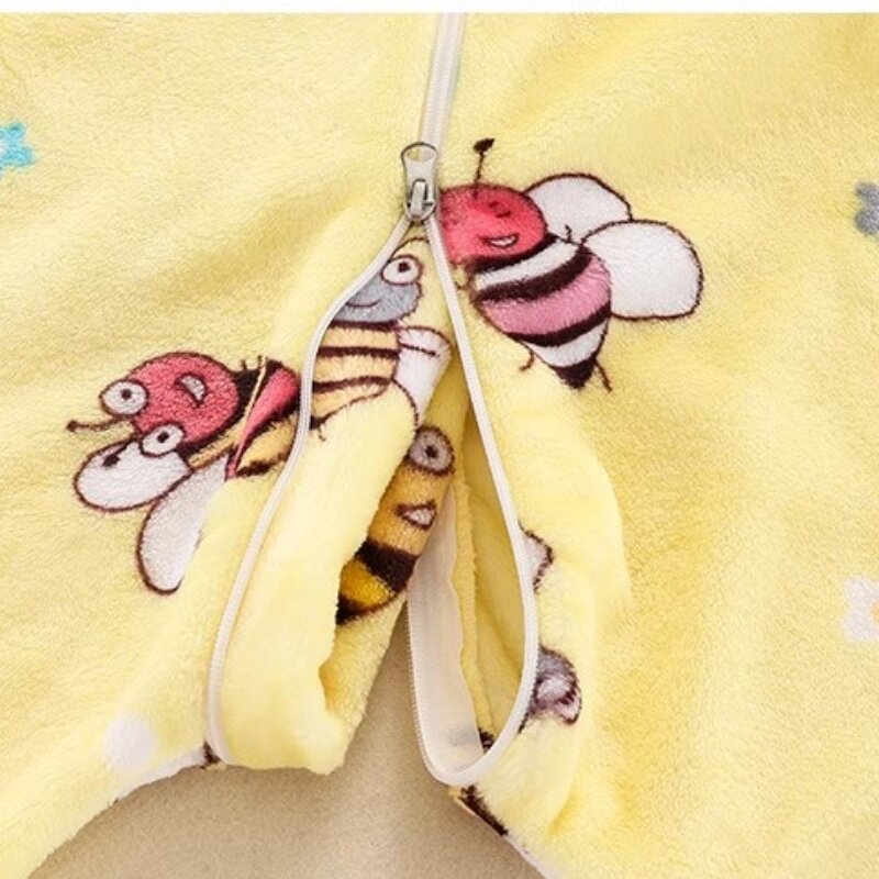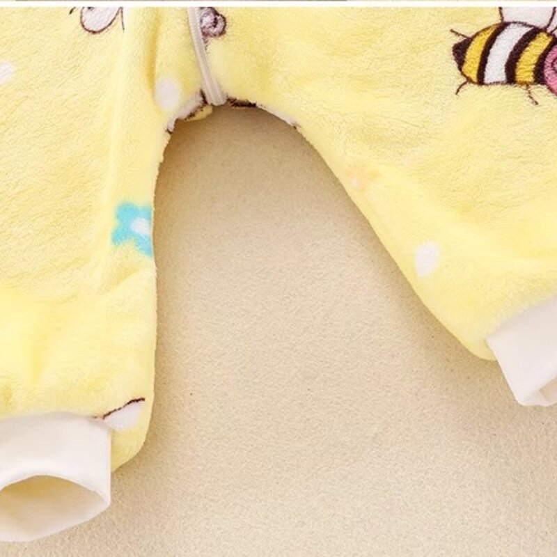 婴儿双面绒连体睡衣秋冬法兰绒男女宝宝儿童家居服防踢被小蜜蜂