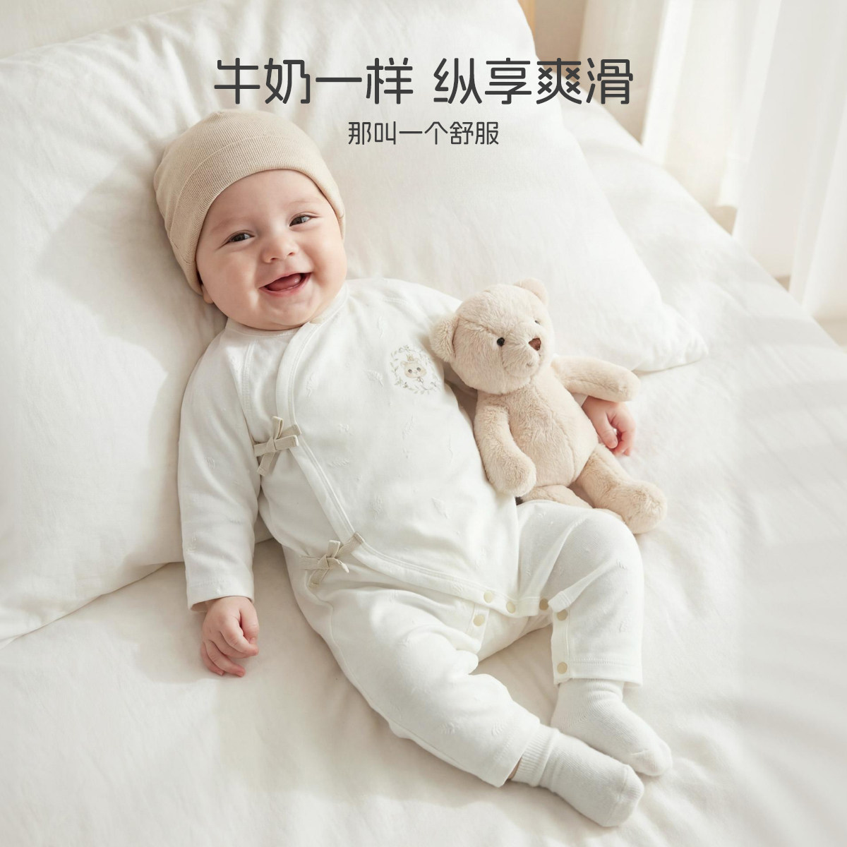 aqpa爱帕新生儿婴儿衣服莱赛尔弹力透气宝宝连体衣哈衣爬服睡衣萌