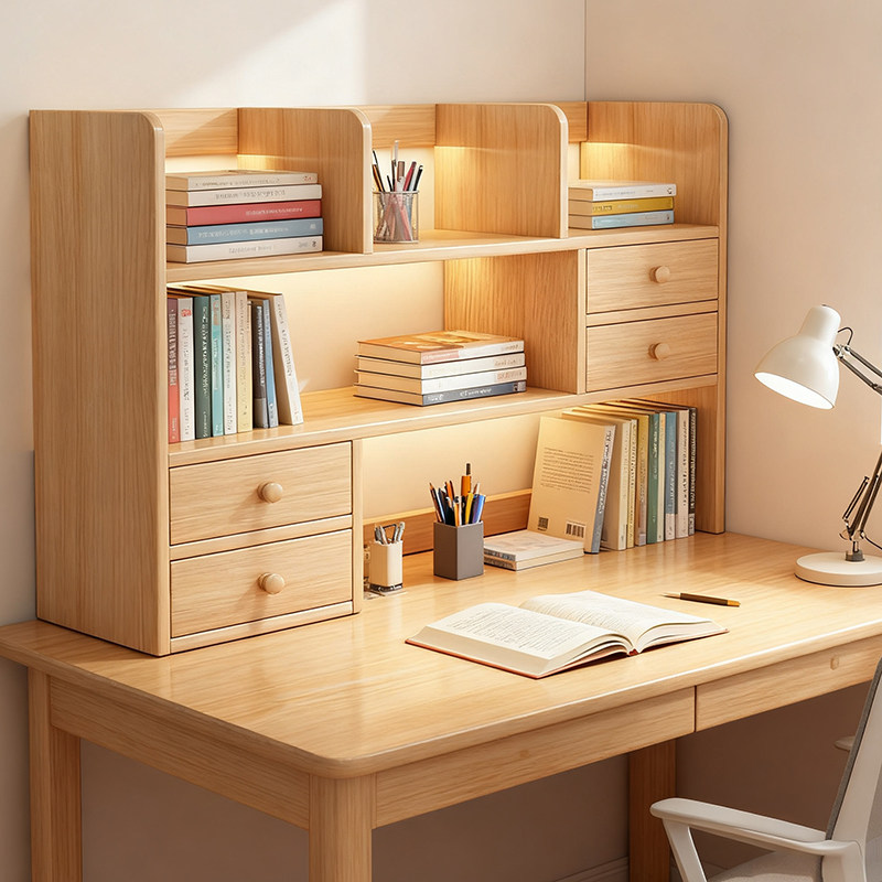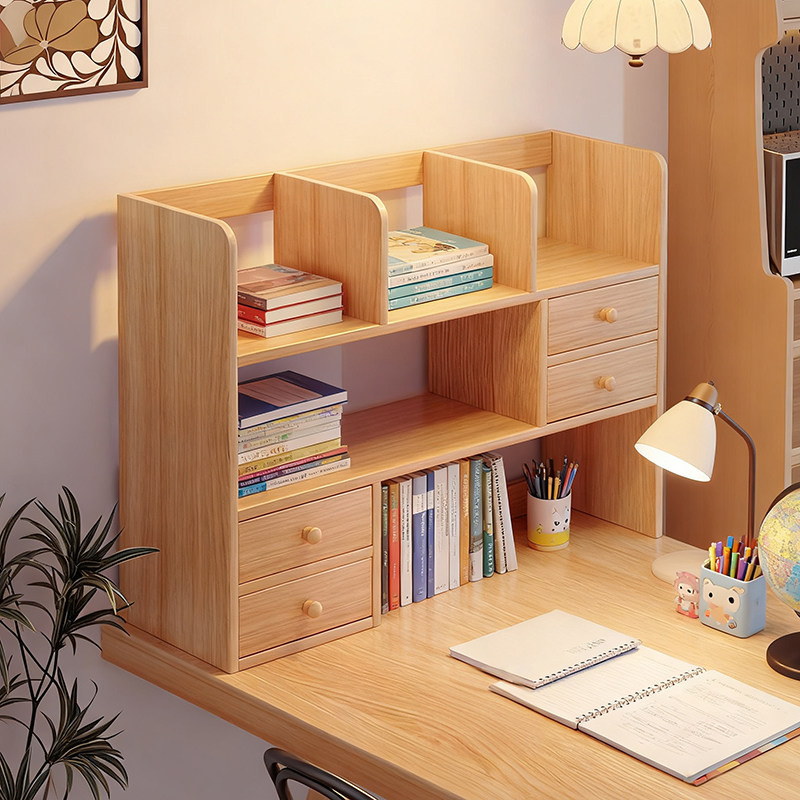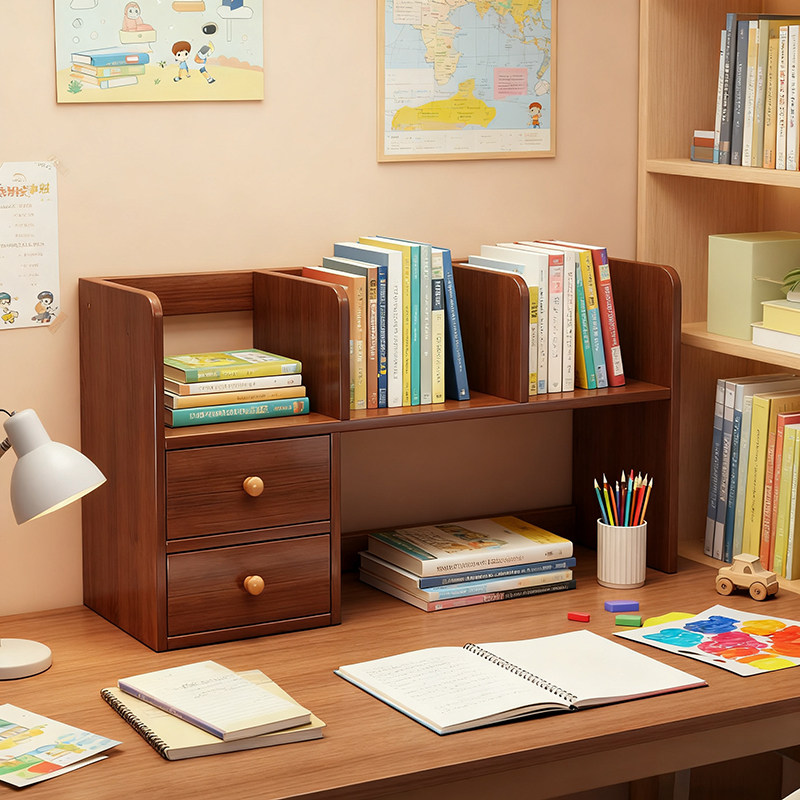 全实木桌面书架桌上置物架办公室收纳改造神器书桌分层伸缩小书柜