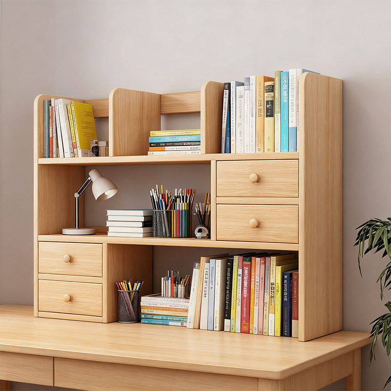 实木书架桌面置物架学生书桌上收纳架子办公立式多层飘窗小型书柜