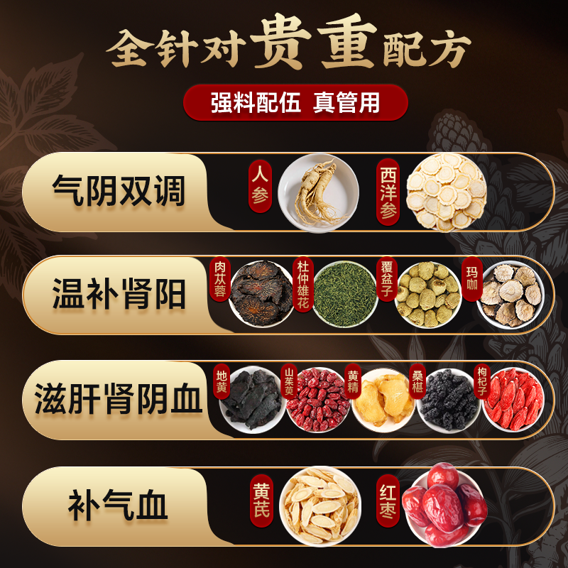 同仁堂人参枸杞玛咖黄精肉苁蓉杜仲八宝茶男人熬夜补精强肾养生茶