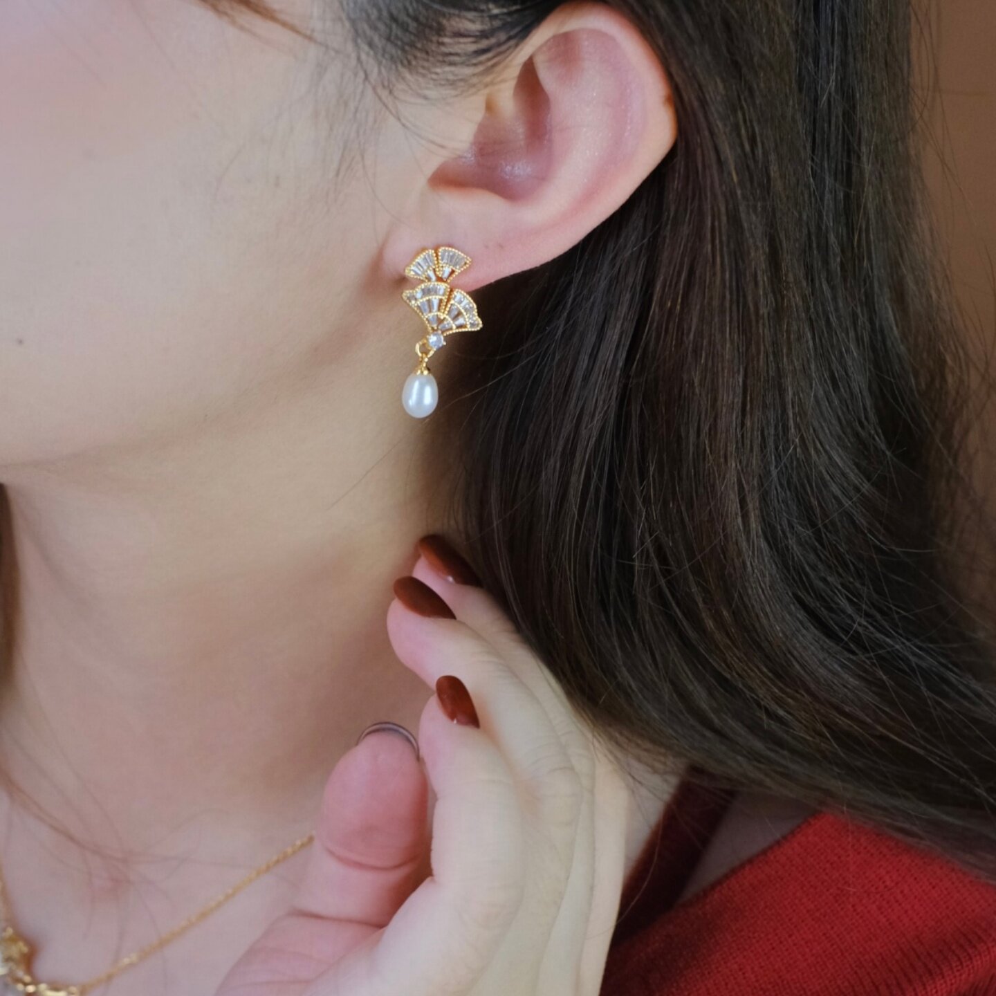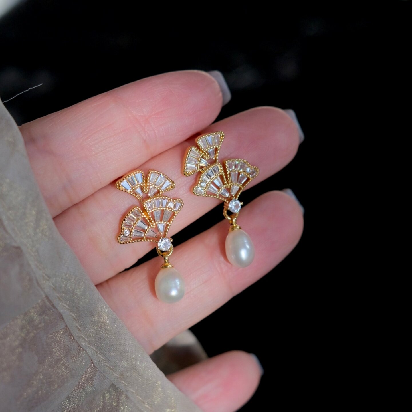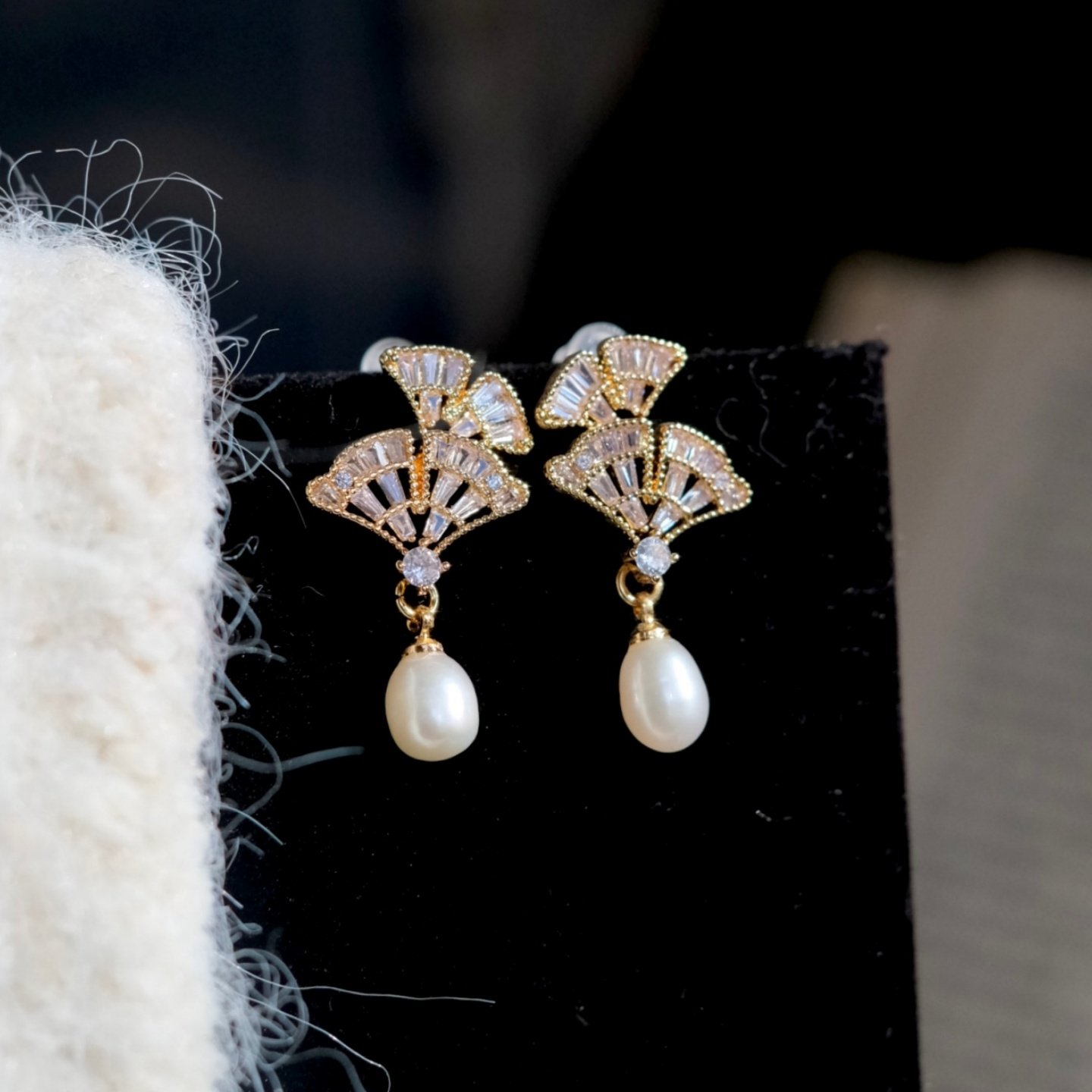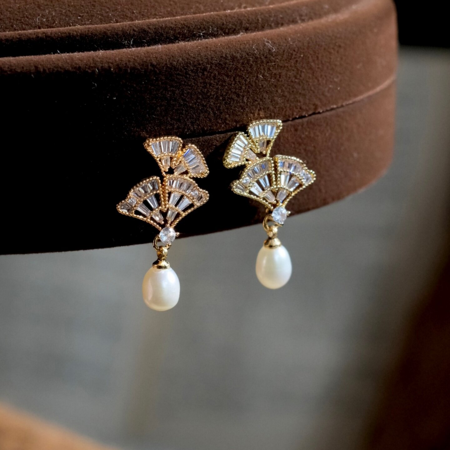 《银杏寄语》复古精致文艺锆石树叶水滴天然淡水珍珠耳钉耳环耳饰