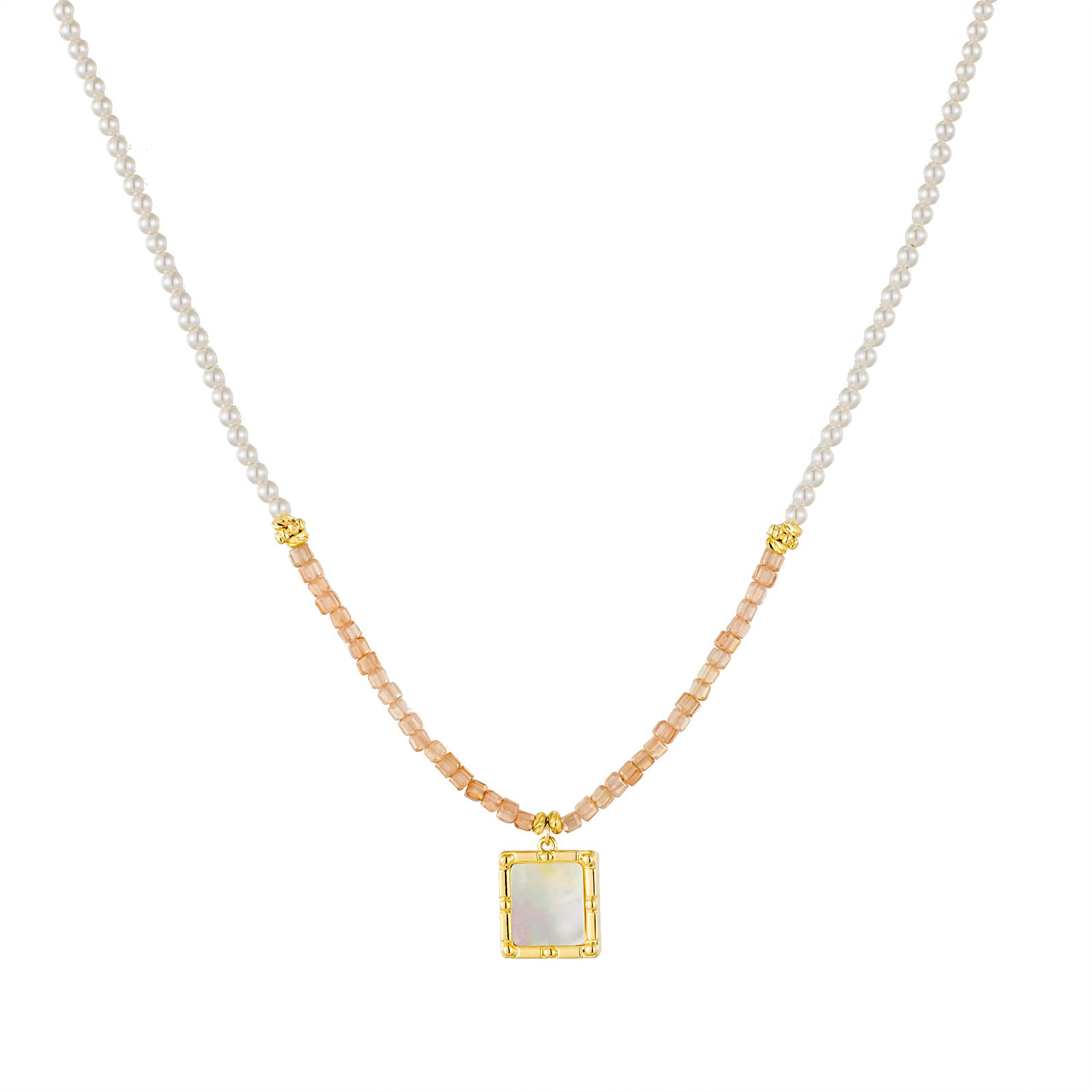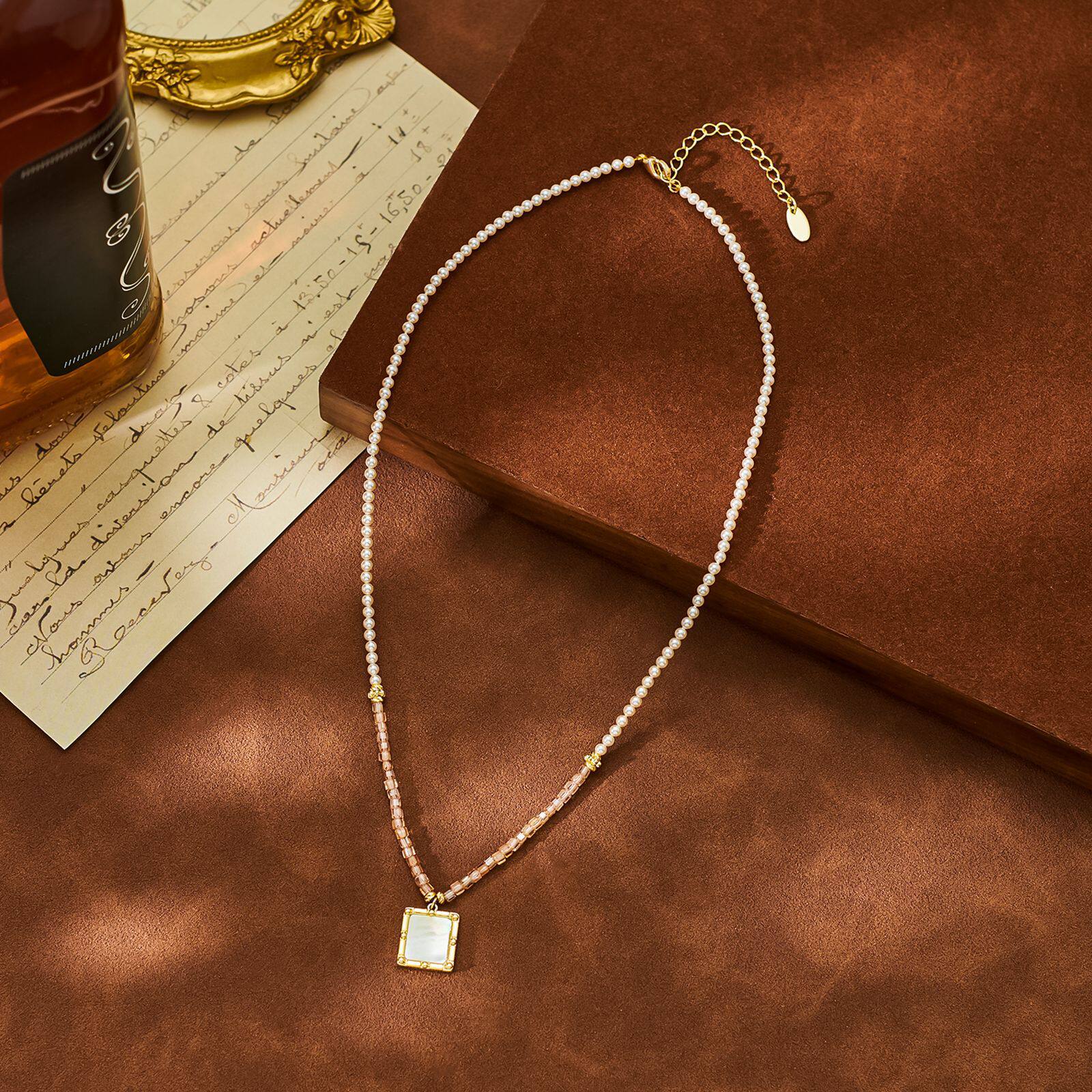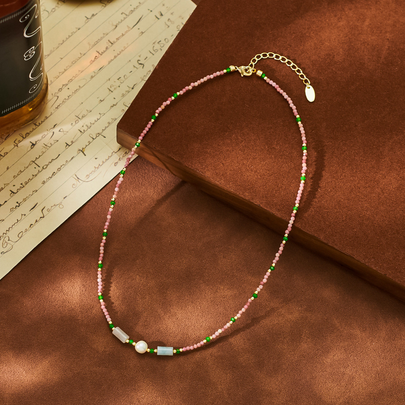 新款复古天然石淡水珍珠项链中古风彩色水晶串珠高级气质感锁骨链