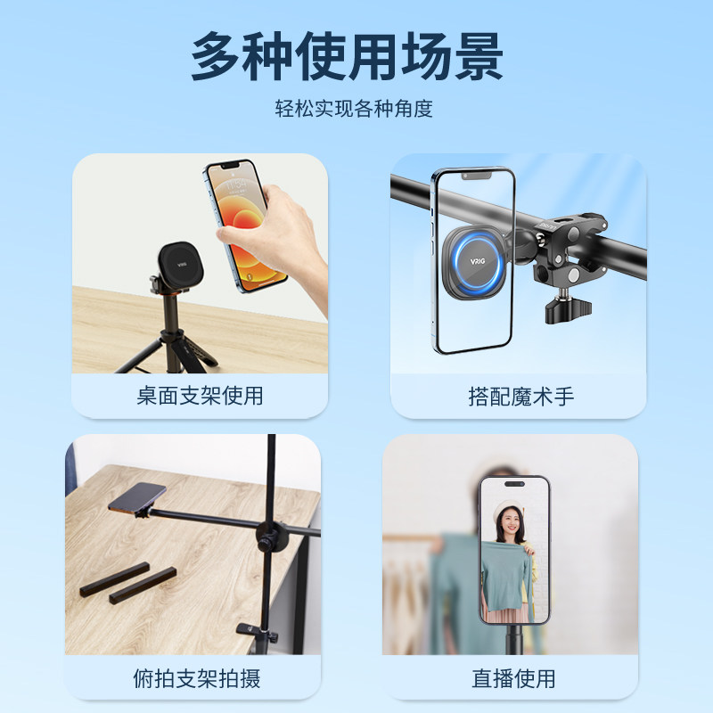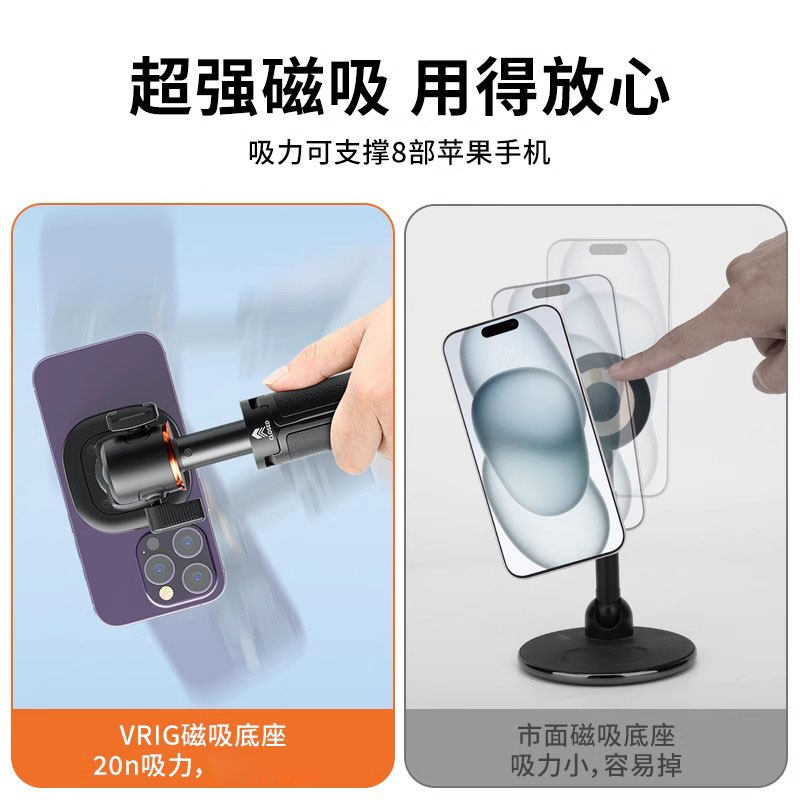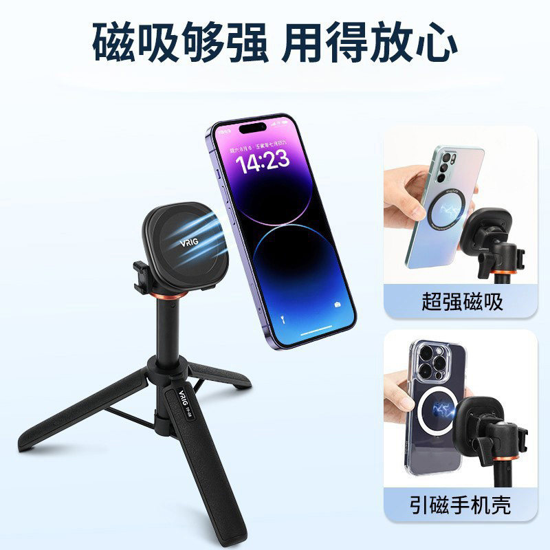 VRIG唯乐格MG01手机磁吸支架新款磁铁MagSafe手机底座三脚架怪手云台1/4扩展阿莱定位配件直播摄影自拍支撑架