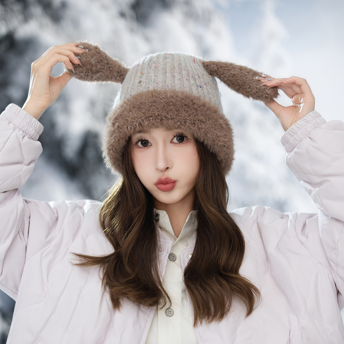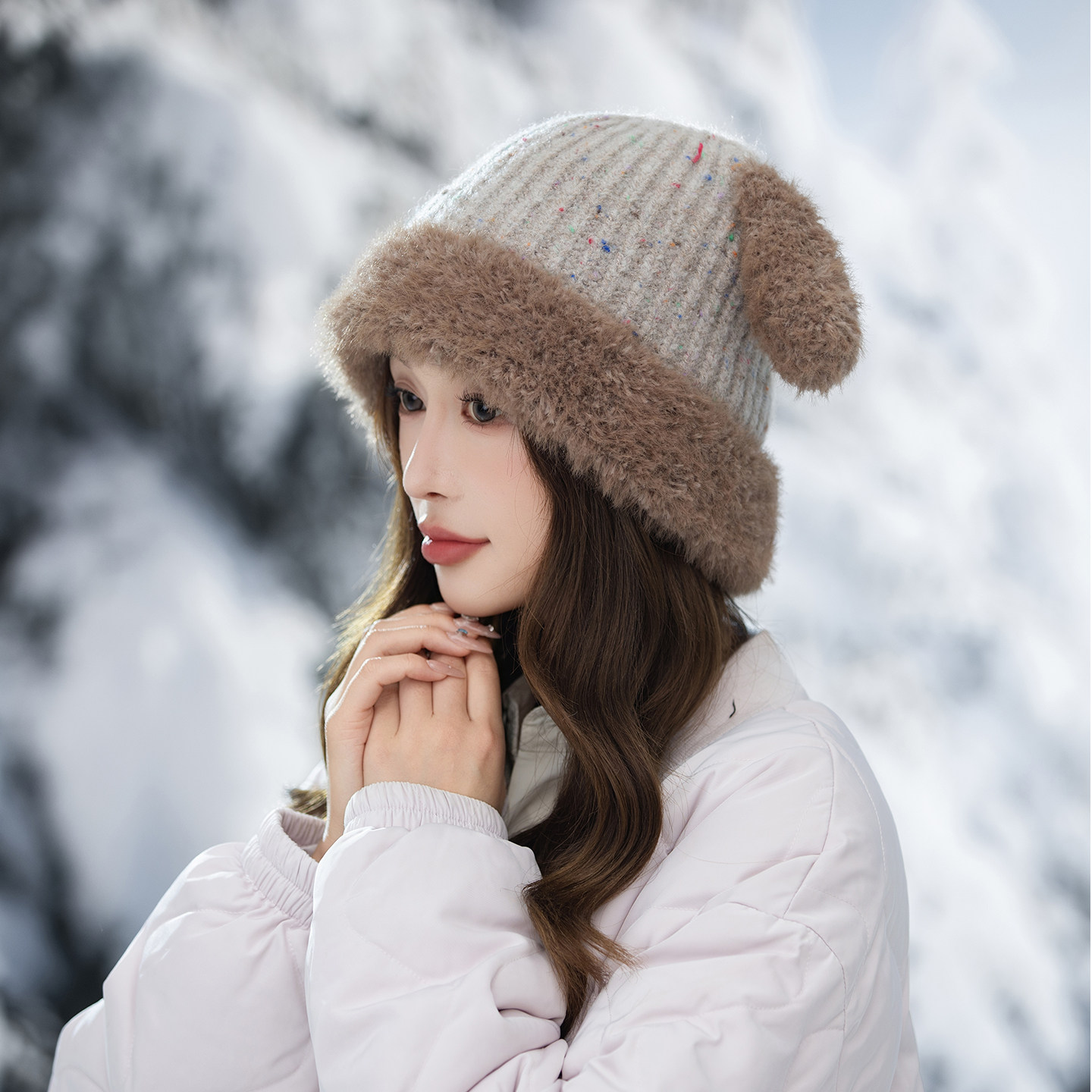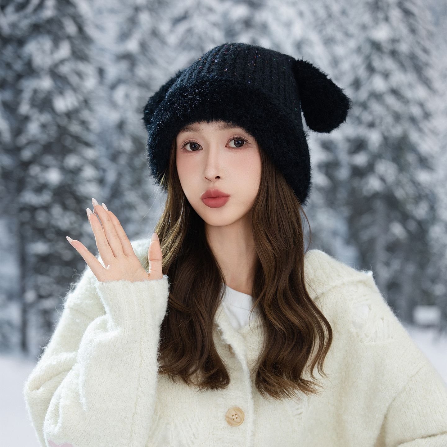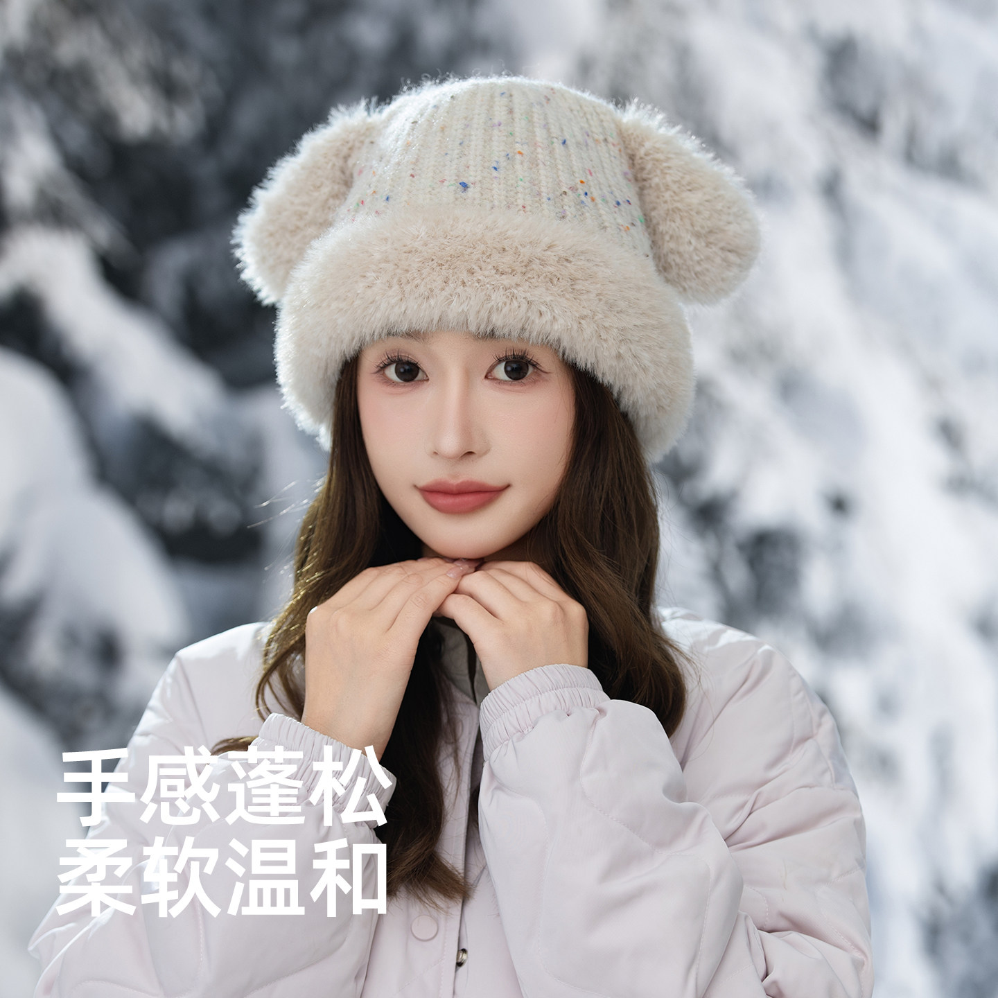 可爱帽子女针织帽秋冬季保暖加厚护耳防寒风包头帽户外旅游骑行J
