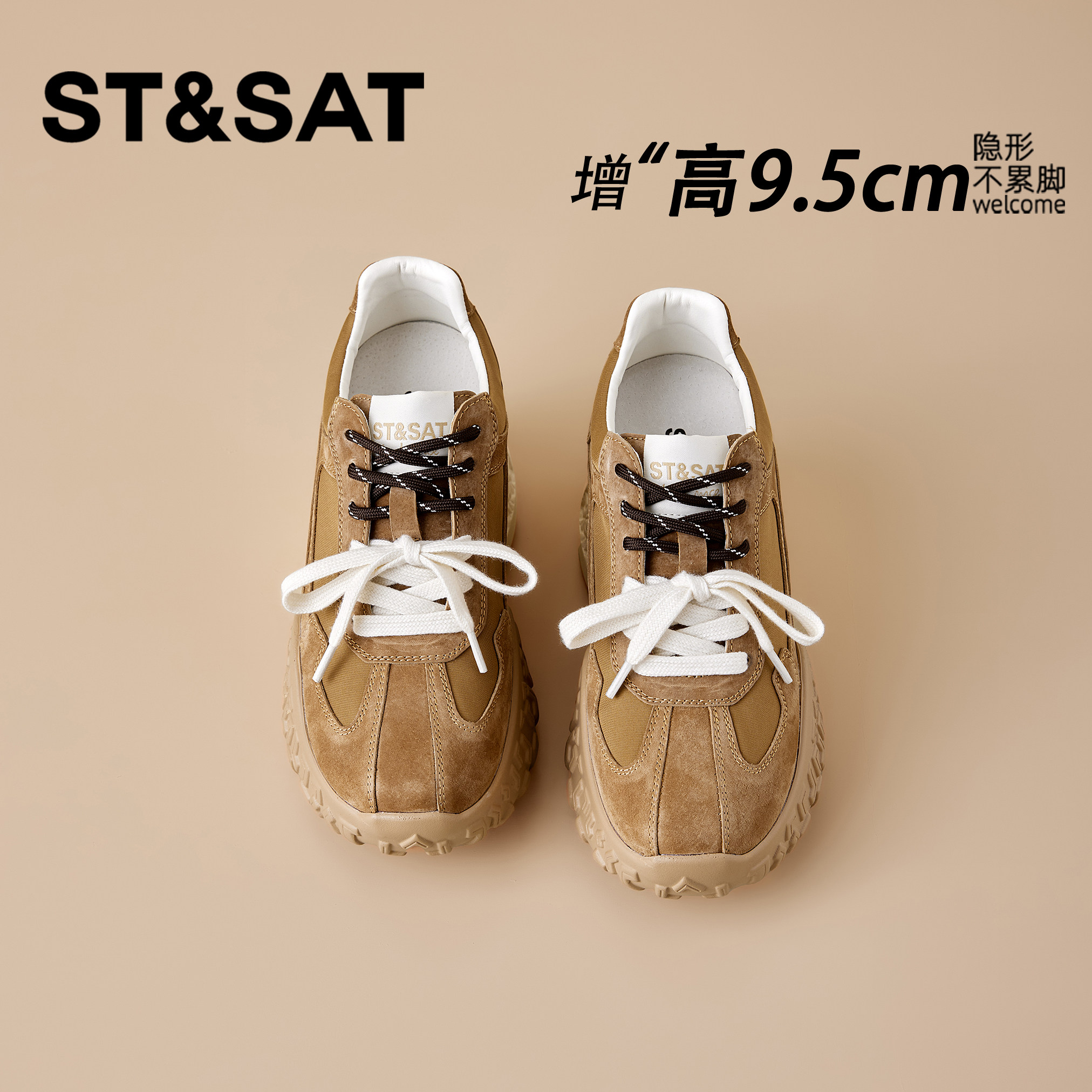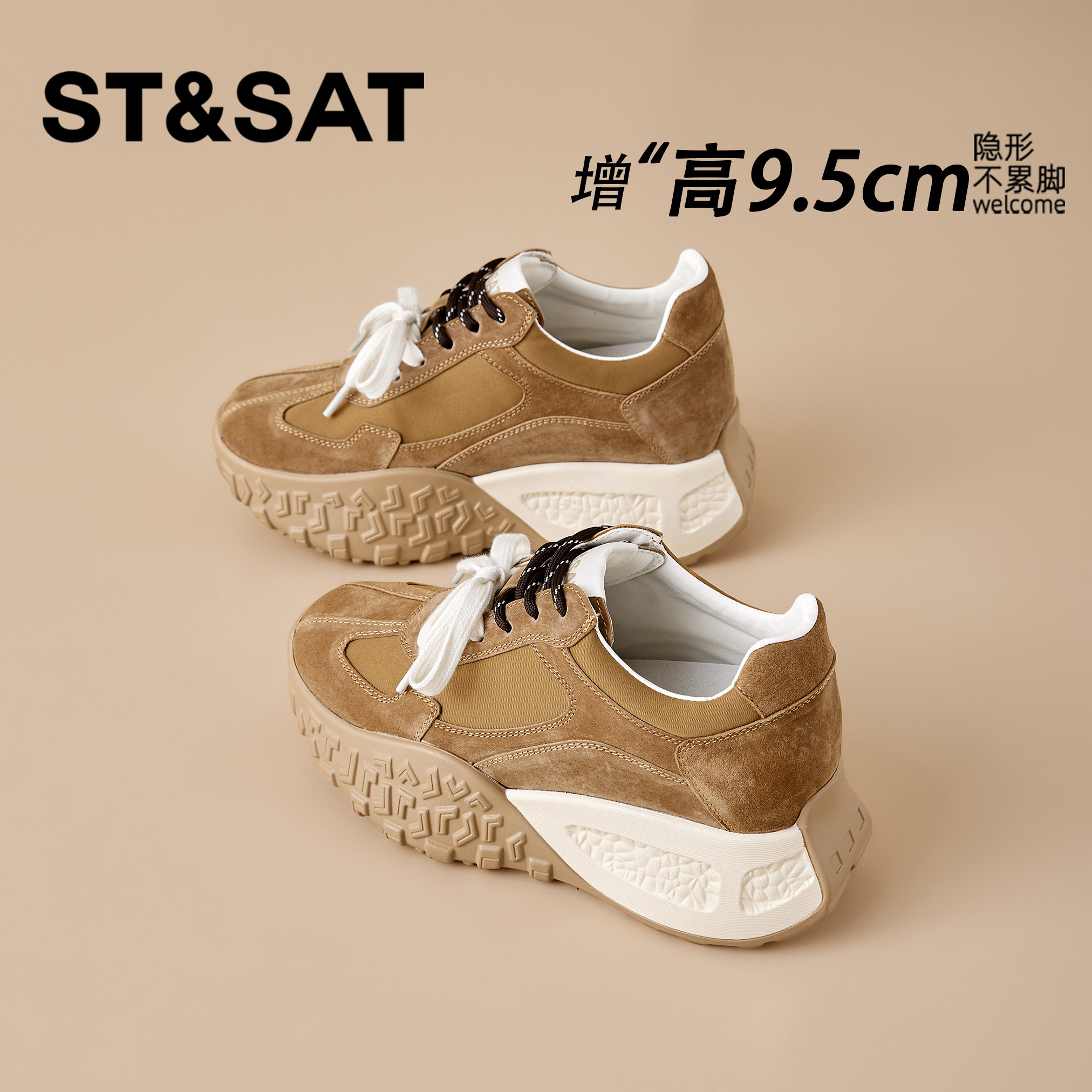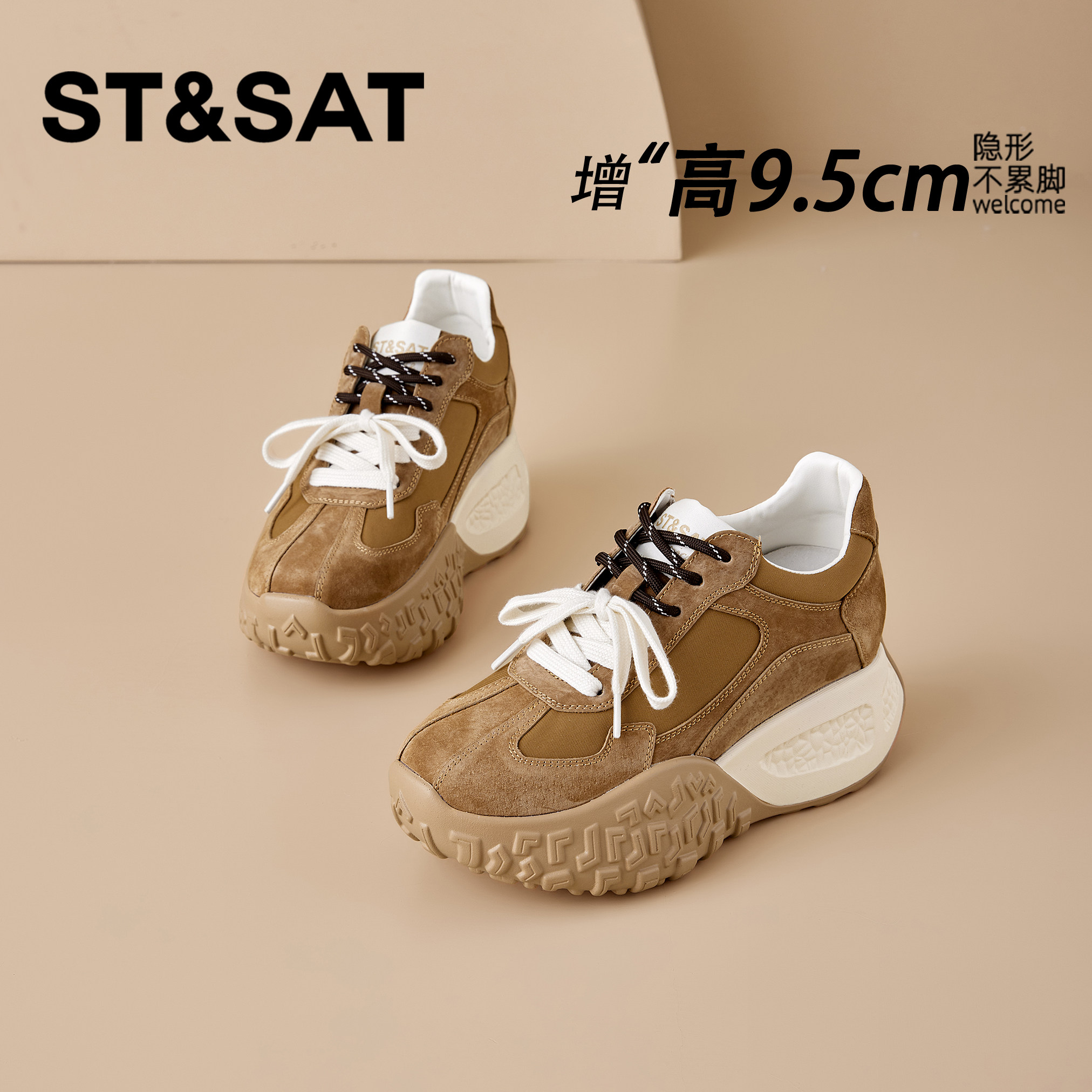 星期六9.5CM内增高德训鞋女秋冬新款复古厚底松糕鞋老爹阿甘女鞋