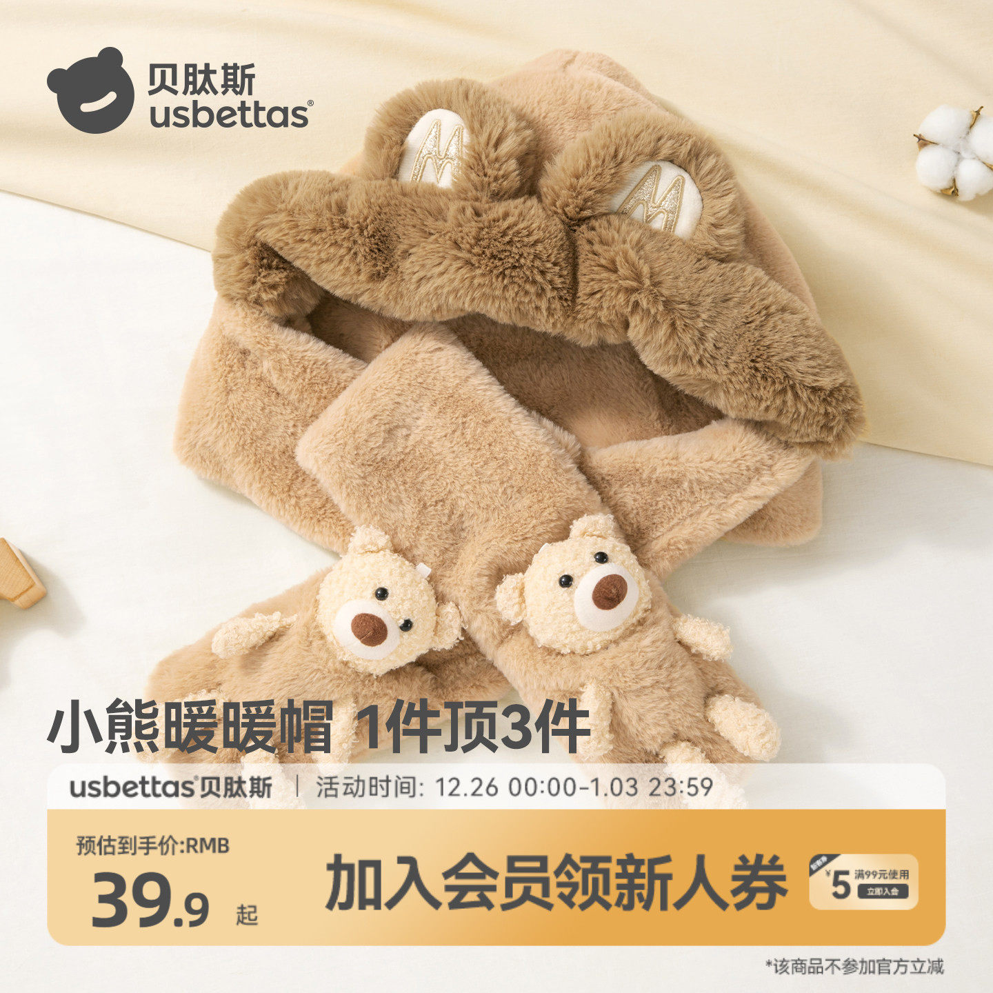 贝肽斯儿童帽子围巾一体帽秋冬男女童宝宝冬天防风保暖围脖护耳S