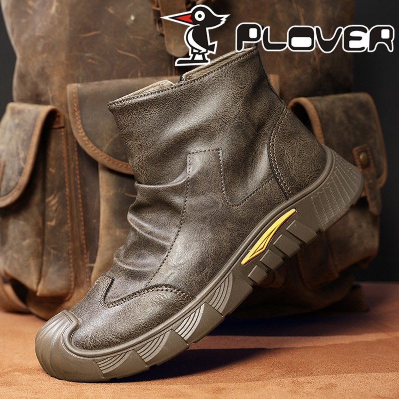 2025年新款啄木鸟加绒高帮拉链靴冬季男士复古风舒适百搭保暖靴