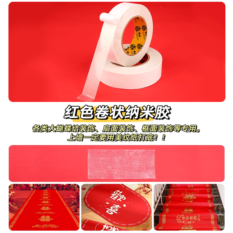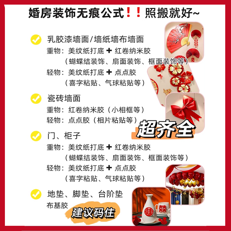 无痕胶婚房布置专用双面胶不留痕胶带结婚喜字美纹纸不伤墙面纳米透明点点胶强力高粘度胶贴气球毛毯固定胶贴