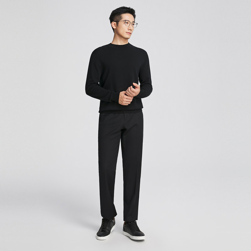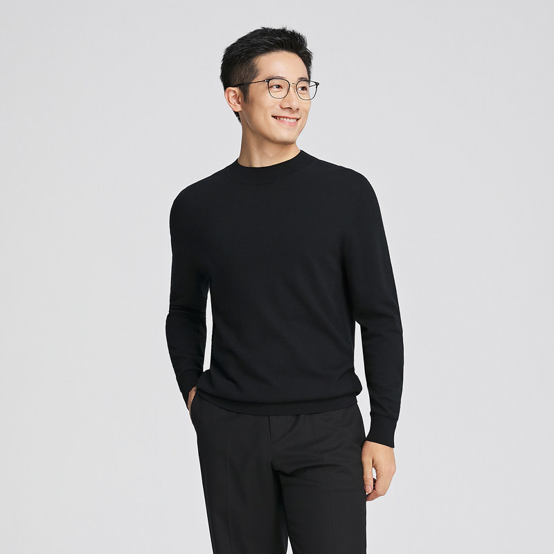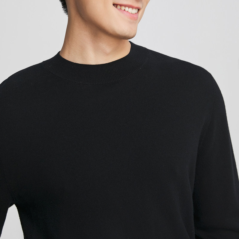 森马毛衫男冬季含羊绒针织衫发热抑菌2025新款基础圆领黑色打底衫