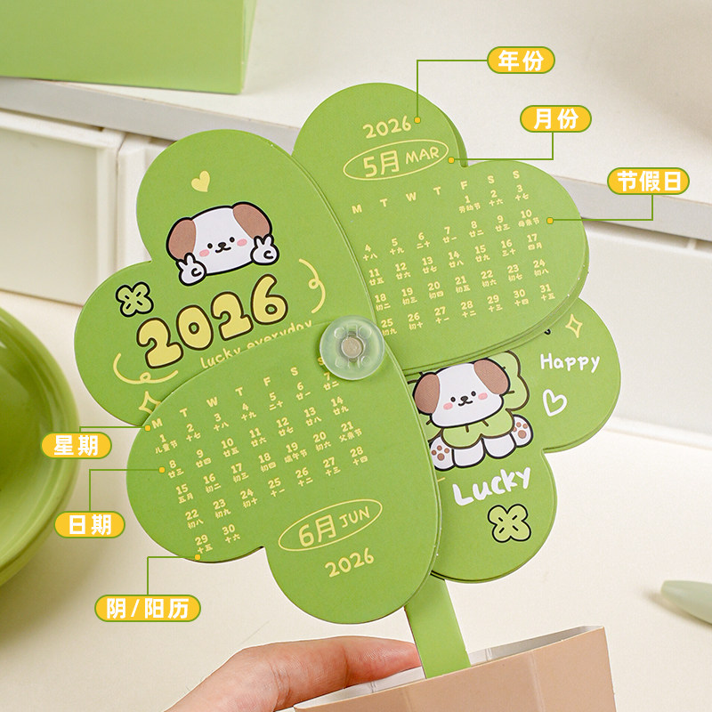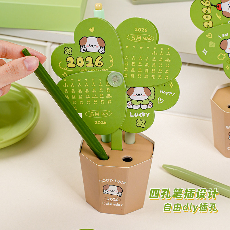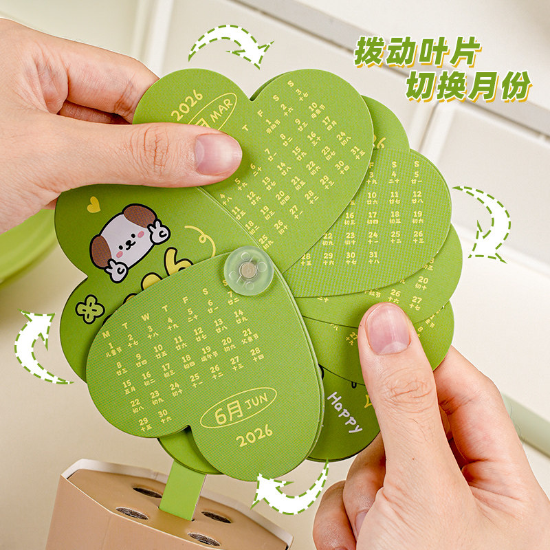 治愈系幸运四叶草盆栽台历多功能2026年原创设计打工人桌面小摆件学生解压台式日历跨年历娱乐解压小清新摆件