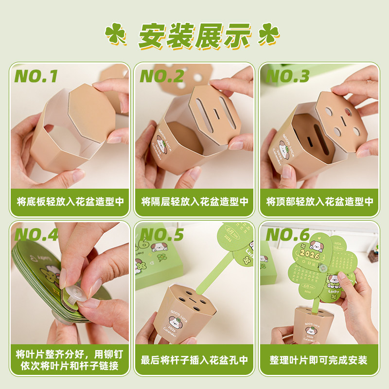 高颜值四叶草盆栽台历2026年打工日历