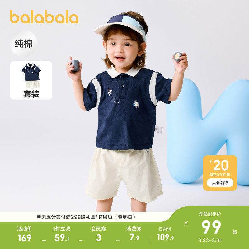 巴拉巴拉宝宝短袖套装夏装男童Polo衫两件套2026休闲时尚洋气潮酷