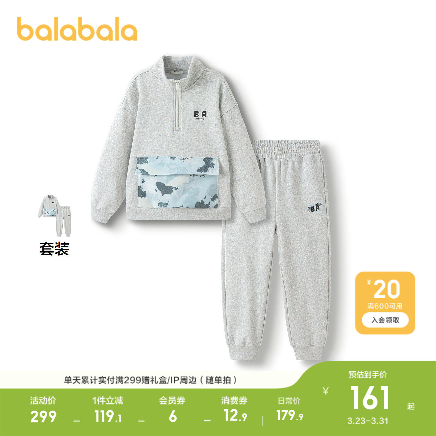 巴拉巴拉童装儿童套装男童长袖春装季中大童宽松时尚两件套运动潮