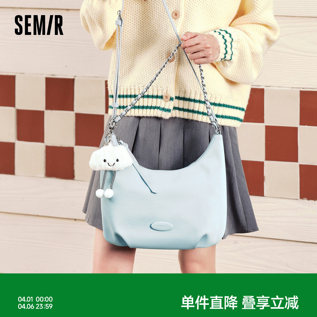 森马包包斜挎包女2024新款单肩包手提包可爱软糯饺子包时尚链条包