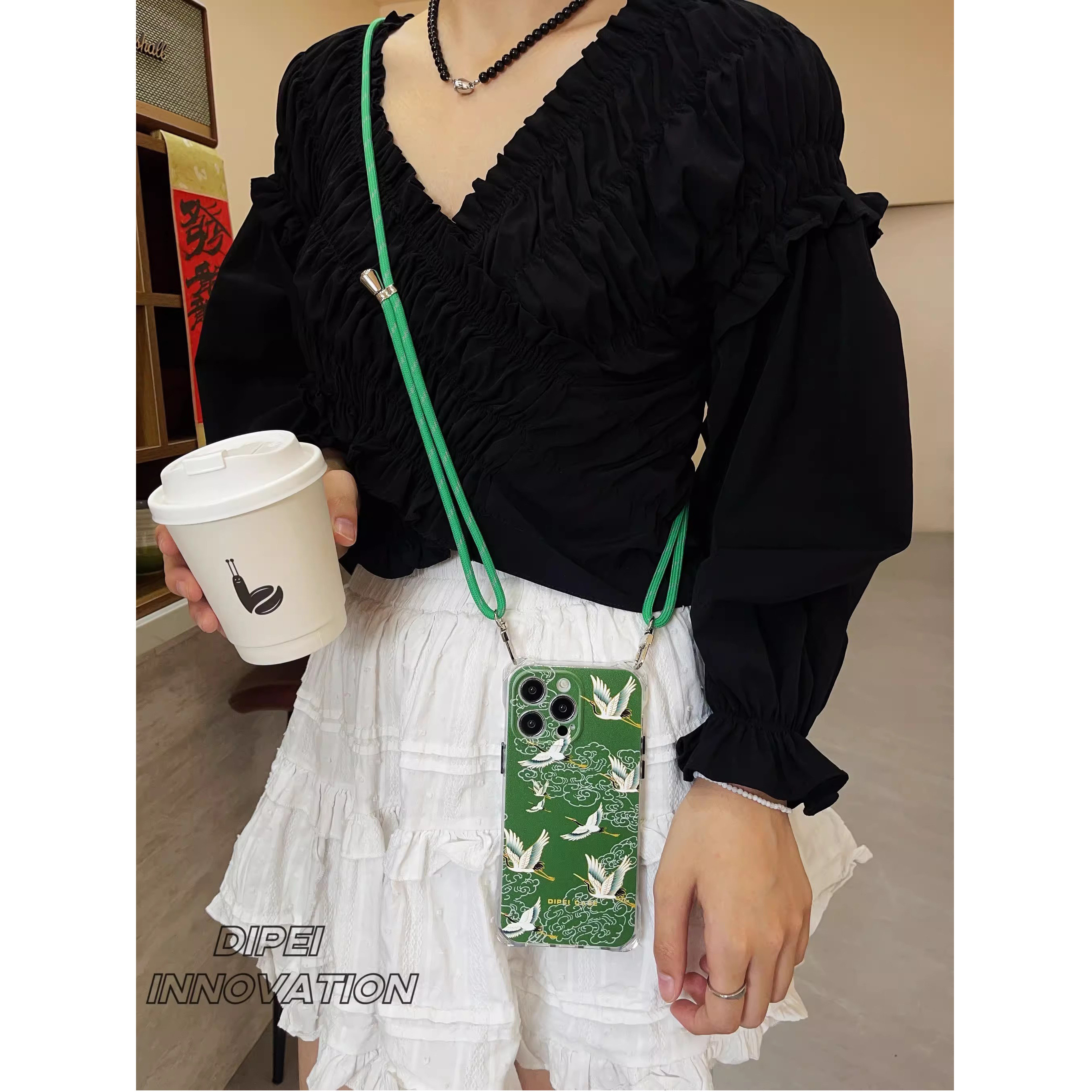 新中式飞鹤手机壳15promax国风挂绳适用小米13苹果iPhone14plus华为nova12手拎mate60pro荣耀200新款pura70女