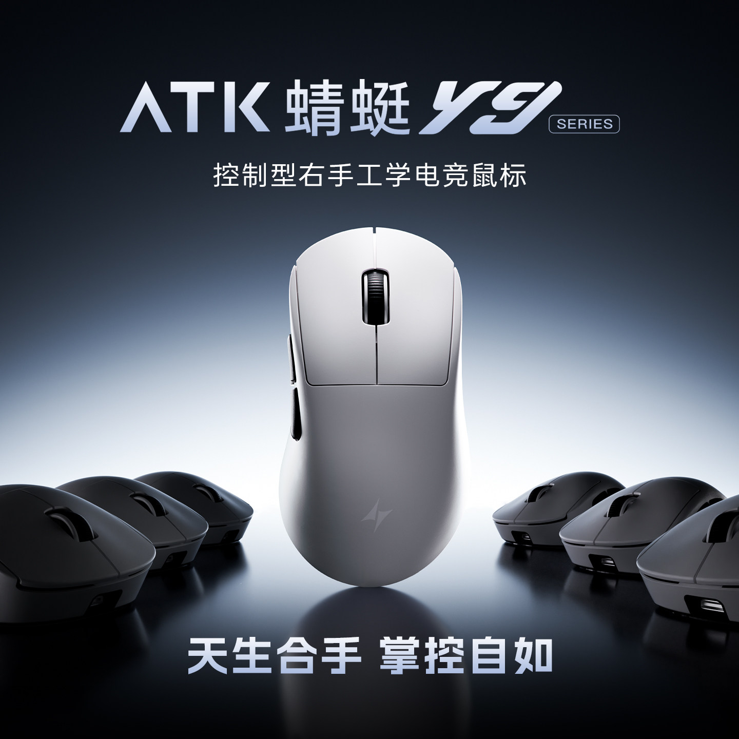 ATK 蜻蜓Y9右手人体工学电竞游戏无线鼠标双8K自研长续航无畏契约
