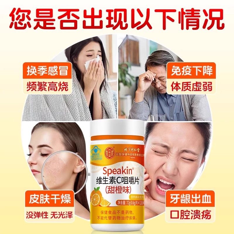 北京同仁堂维生素C咀嚼片正品补充c增强儿童成人免疫力官方旗舰店