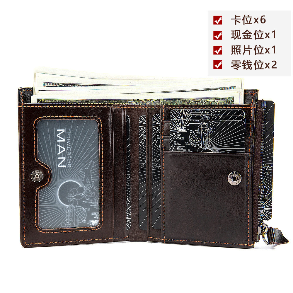 玛轮特男士真皮零钱包复古休闲竖款钱包头层牛皮美金夹wallet潮款