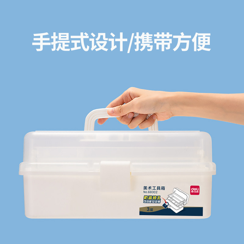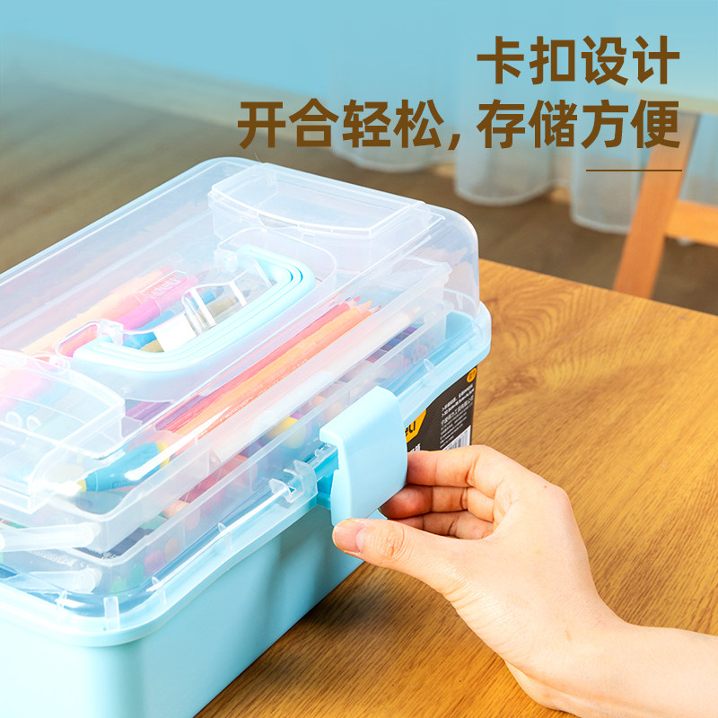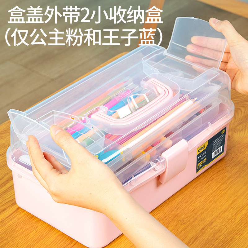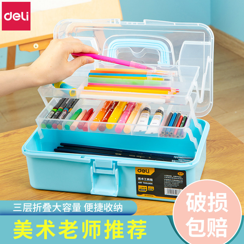 得力美术工具箱小学生箱子绘画颜料收纳箱家用多功能手提三层折叠