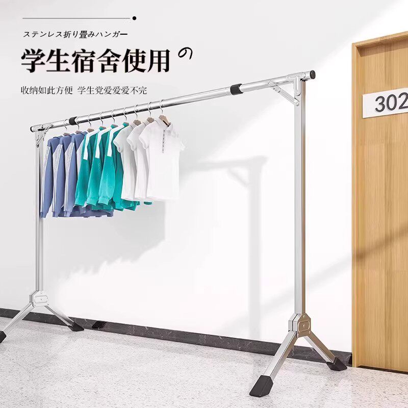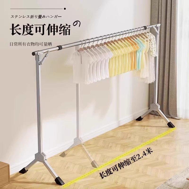 不锈钢晾衣架落地折叠室内外家用晒衣架单杆阳台挂衣架伸缩晾衣杆