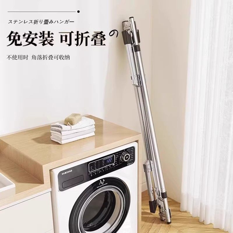 隐形折叠晾衣架免打孔晾衣杆落地伸缩不占地吸盘阳台侧面晾衣神器