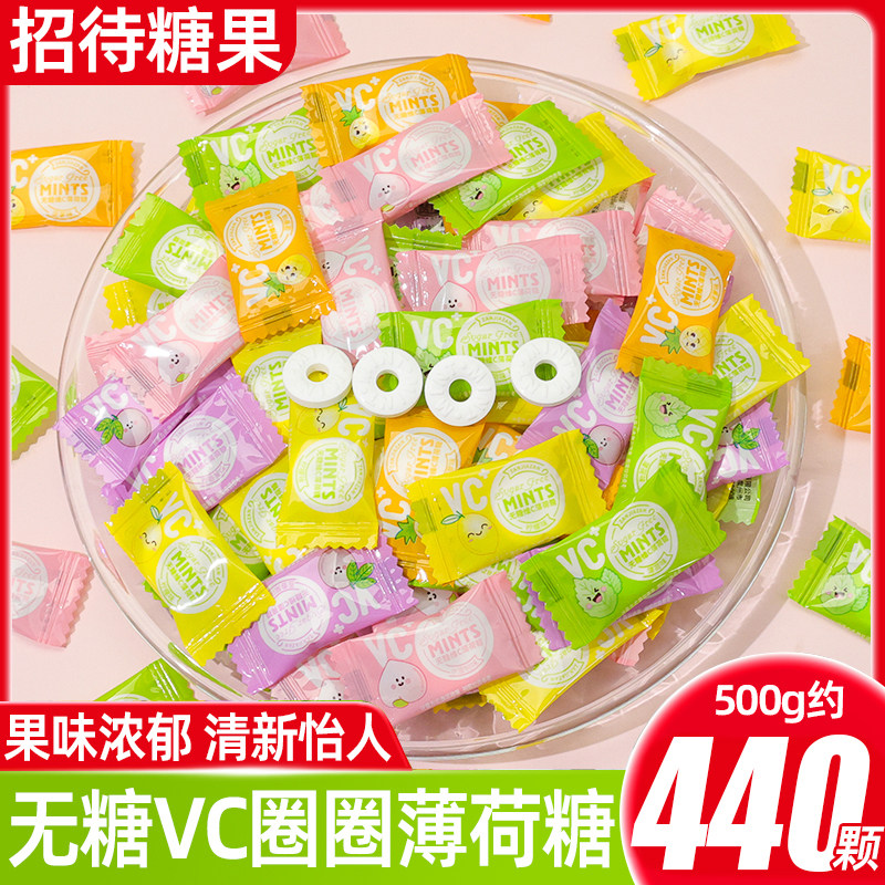 无糖圈圈薄荷糖水果糖果零食休闲独立小包装清新口气维C清凉招待