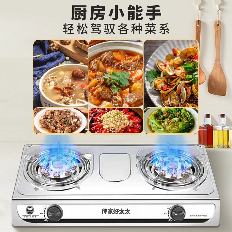好太太煤气灶双灶家用液化气台式不锈钢燃气灶猛火老式双头灶具