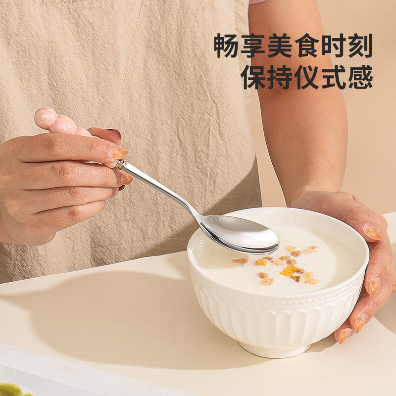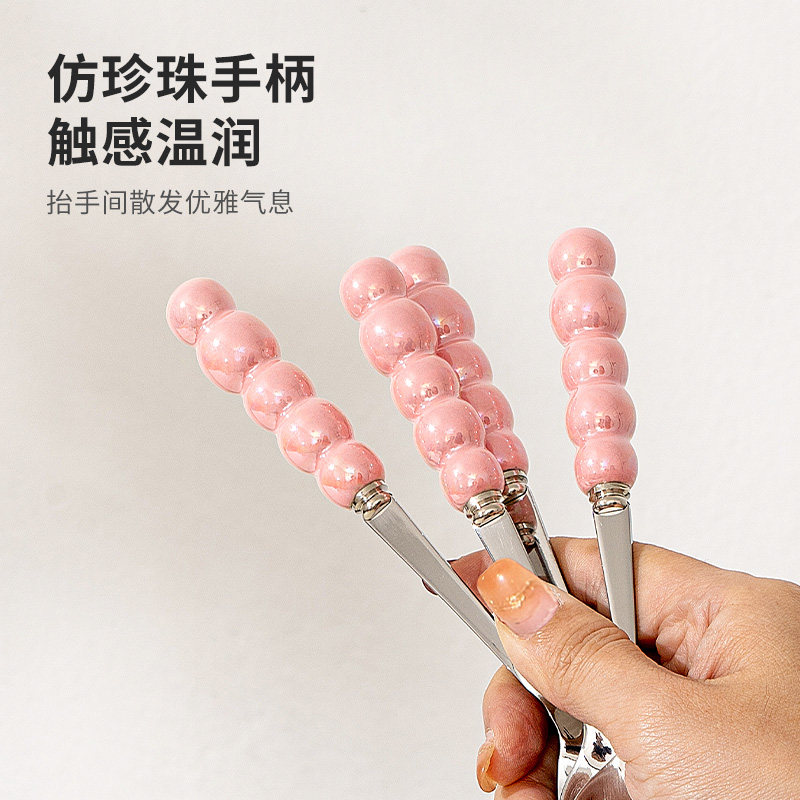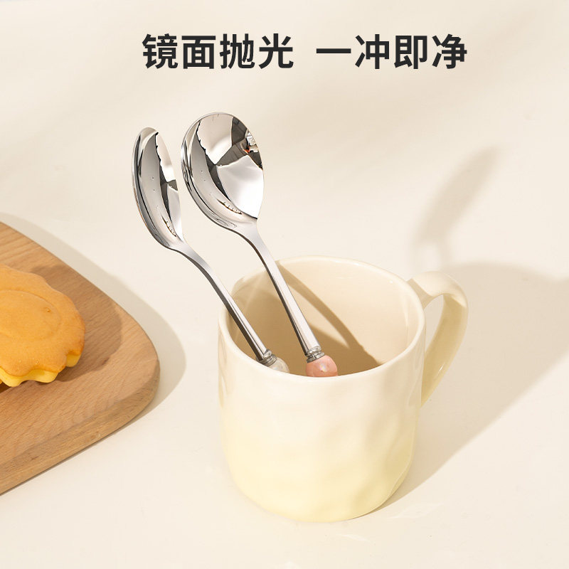 珍珠长柄搅拌勺不锈钢精致小勺子陶瓷咖啡勺甜品勺酸奶勺蛋糕勺