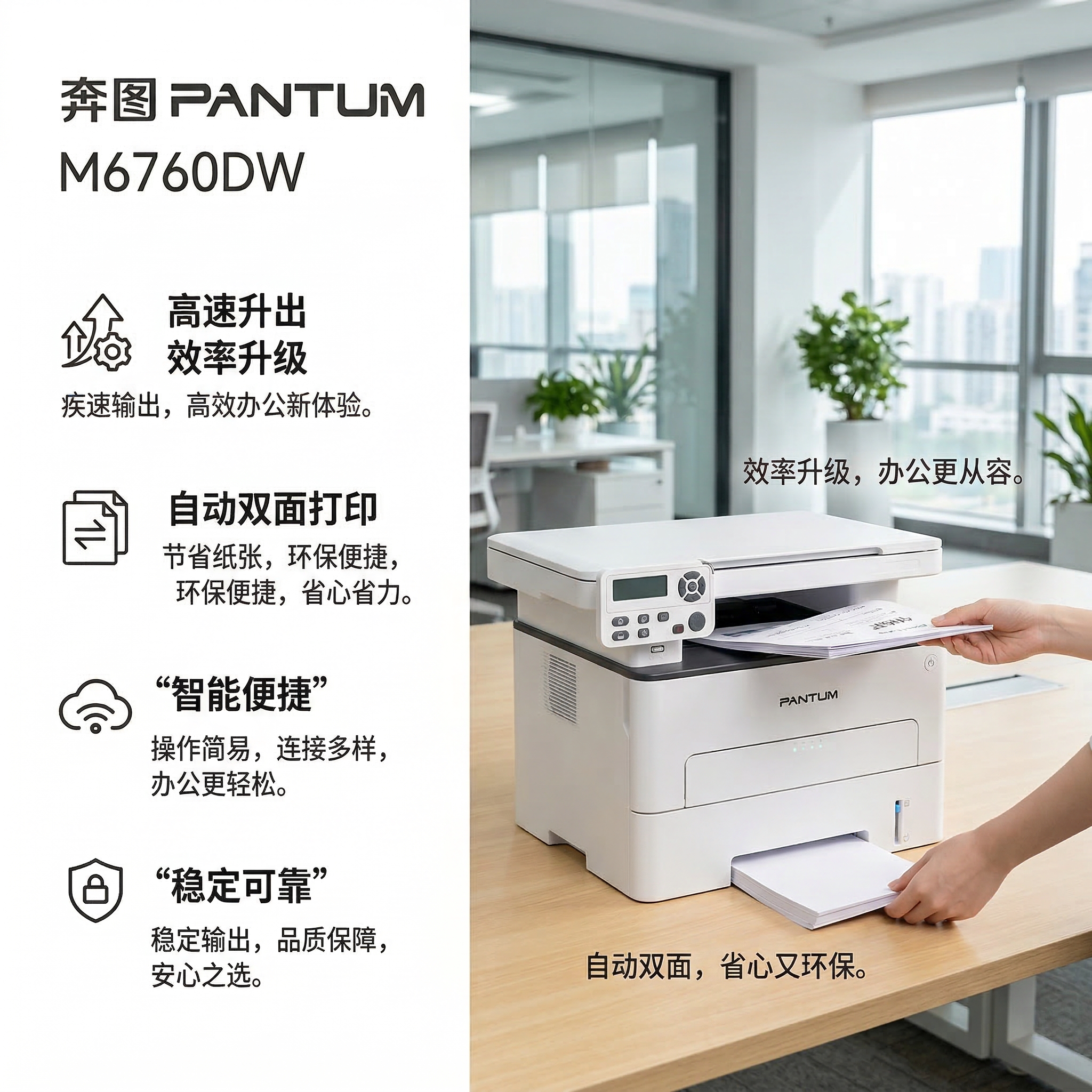 奔图M6760DW黑白激光打印复印扫描一体机自动双面商用办公专用M6212W小型家用无线多功能A4官方正品顺丰发货