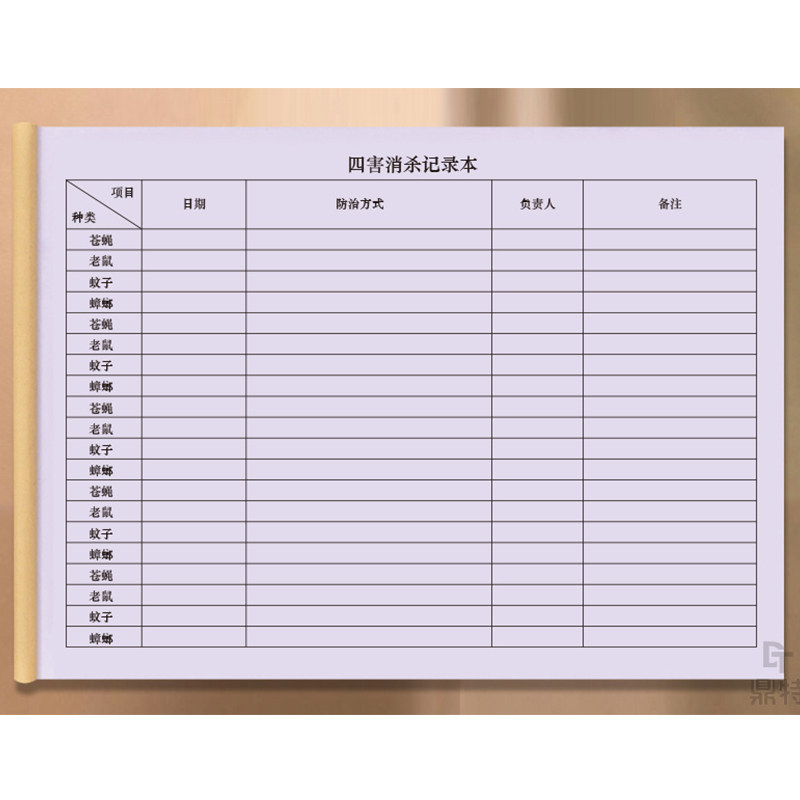 四害消杀记录本酒店餐饮食堂理发店美容美发卫生间厨房消毒杀虫登记本记录册商铺门店门诊医院虫害鼠害蚊蝇本