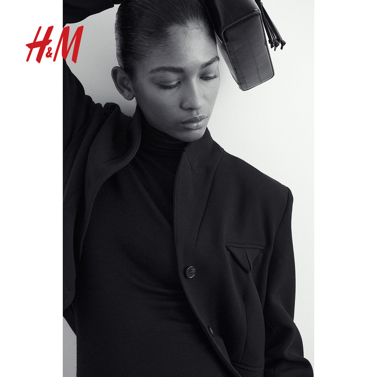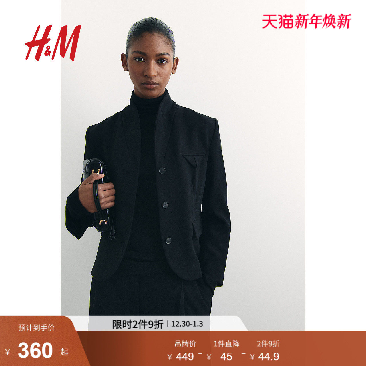 HM女装冬季V领单排扣戗驳领休闲西装1263333