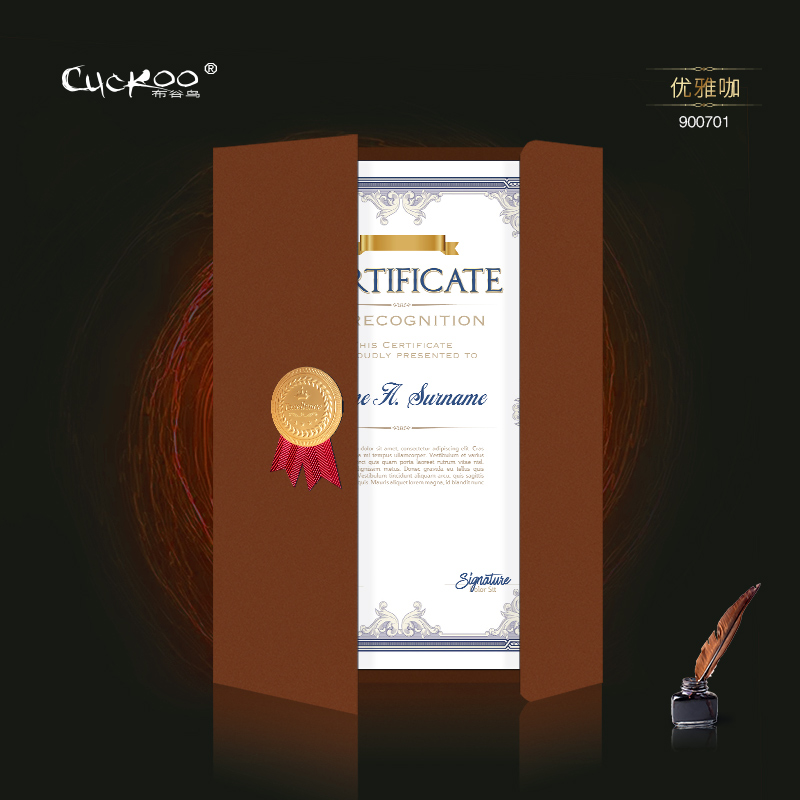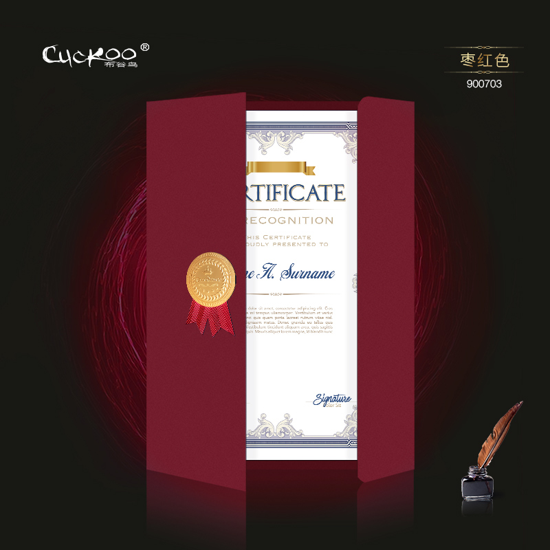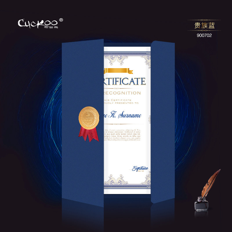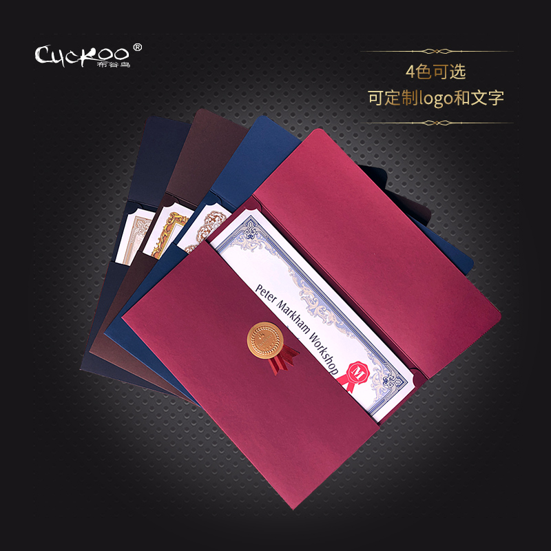 布谷鸟A4三折页证书封套封皮荣誉证书奖状外壳封面定制烫金企业LOGO结业培训毕业聘书制作欧美国际会议文件夹
