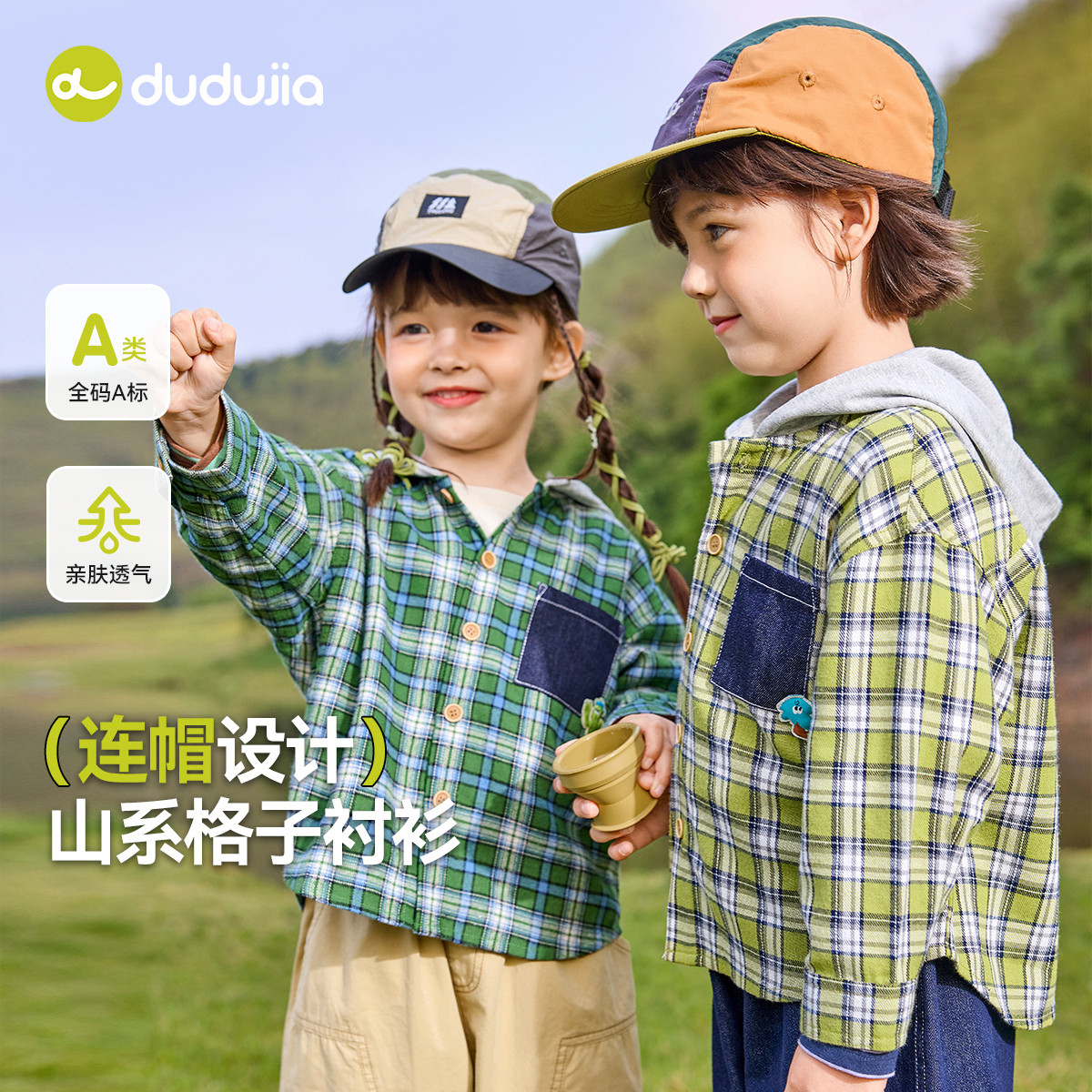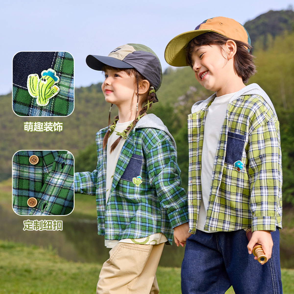 【高棉值】嘟嘟家宝宝连帽衬衫春季儿童衬衣春款男童格子衫春秋潮