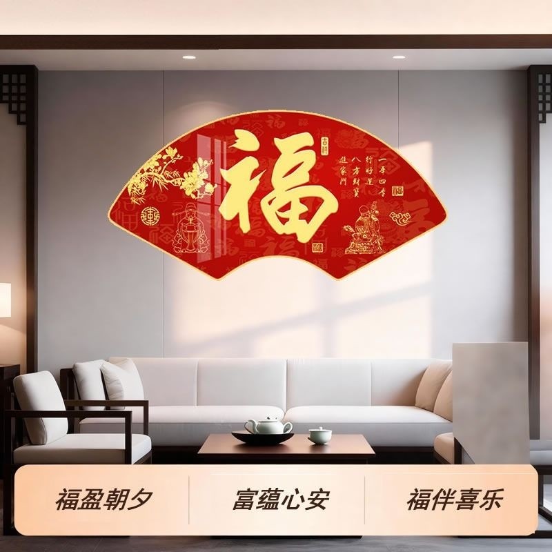 新中式挂画福字挂件客厅装饰画电视背景墙扇形挂饰餐厅大气装饰品