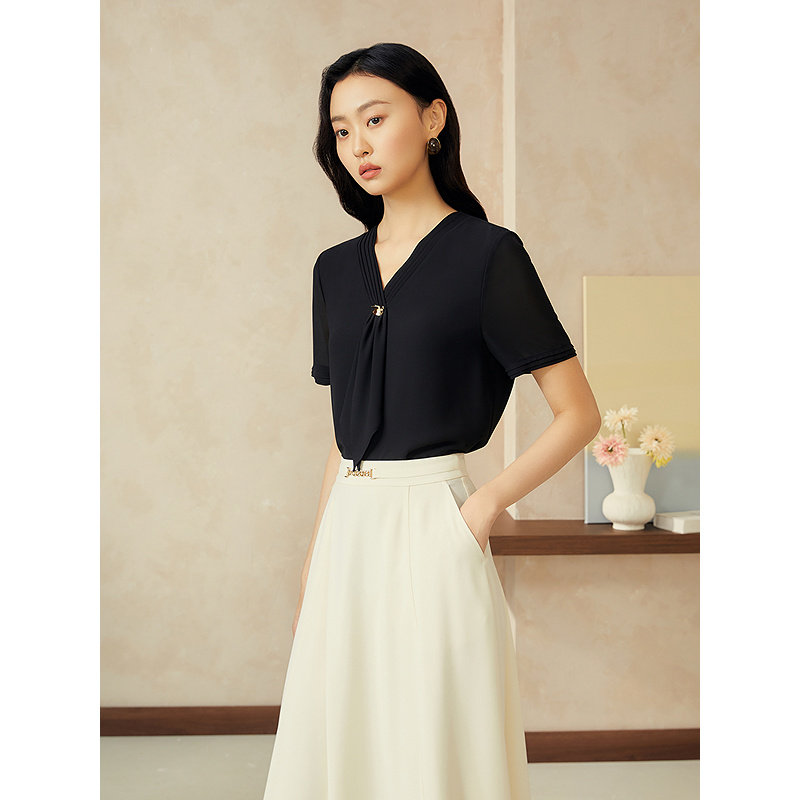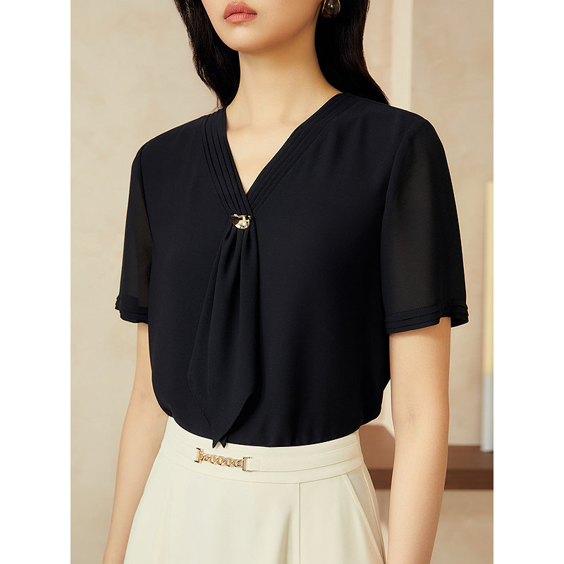 【碎花系列】YINER音儿专选2025夏季新款雪纺衬衫塔克领飘带上衣