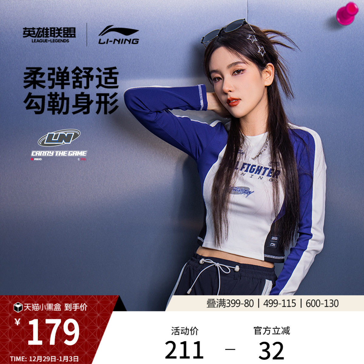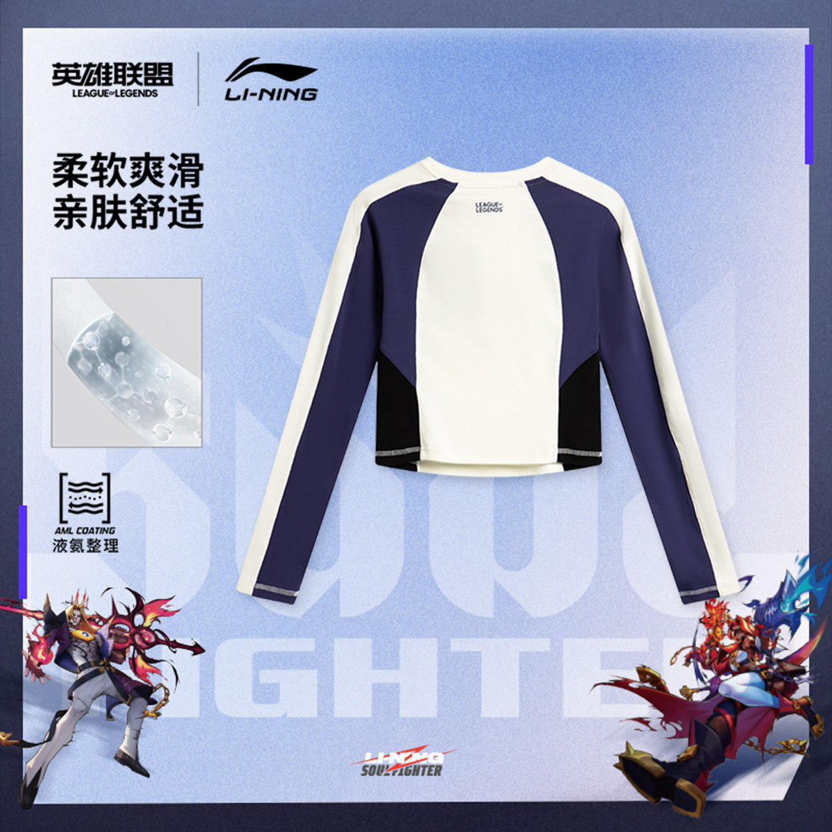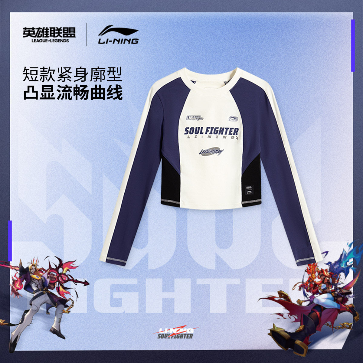 李宁 x 英雄联盟联名系列斗魂觉醒长袖T恤女25新款圆领上衣运动服