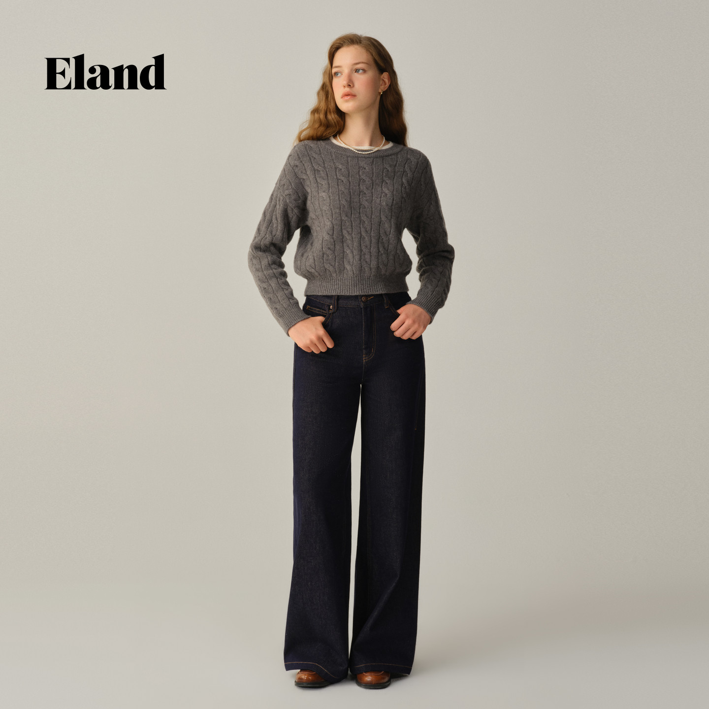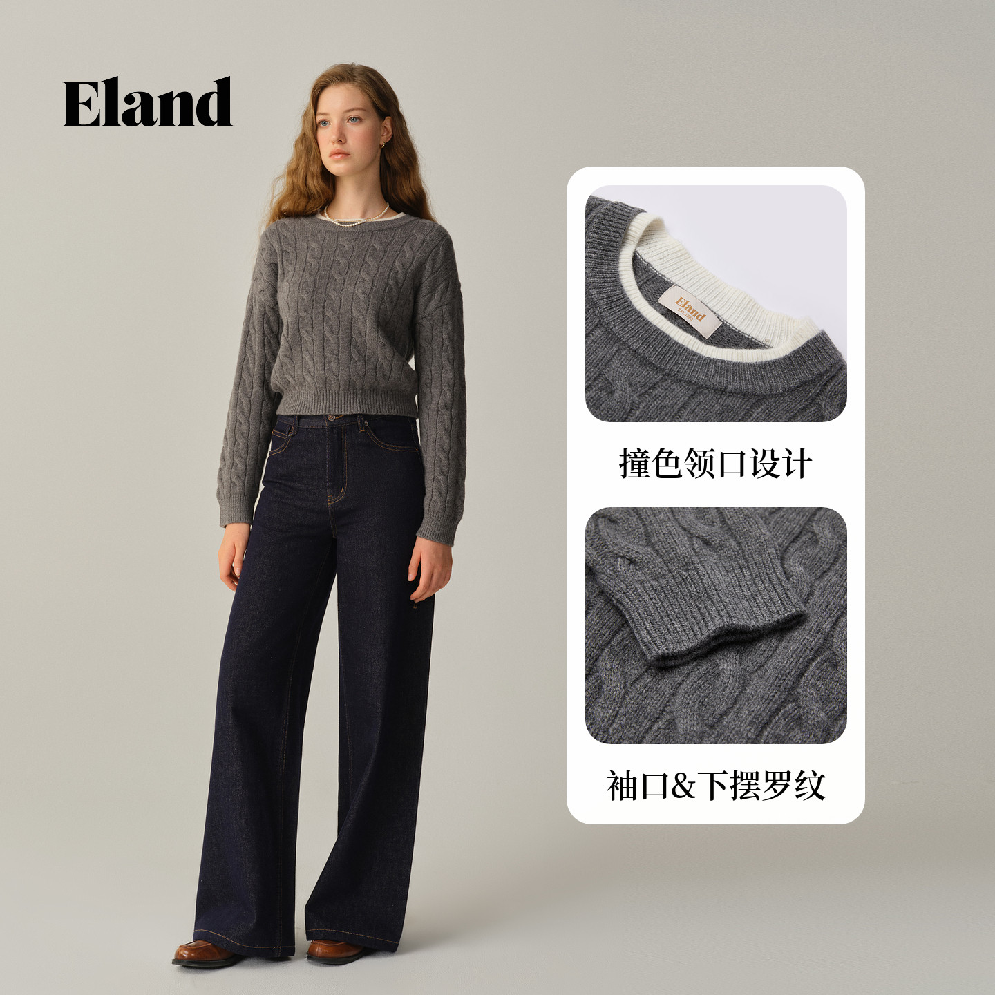 【100%绵羊毛】Eland衣恋毛衣女圆领套头针织衫2025冬季新款