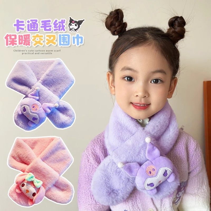 儿童围巾秋冬季2026新款女童保暖交叉围脖小女孩卡通套脖紫色白色