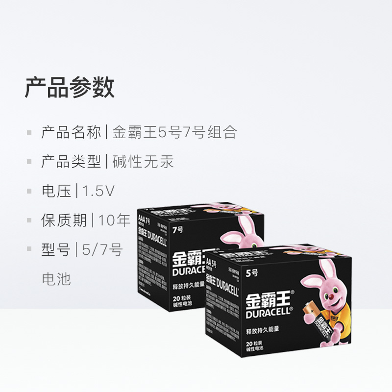 DURACELL金霸王碱性电池5号20粒+7号20粒干电池小电池五号七普通