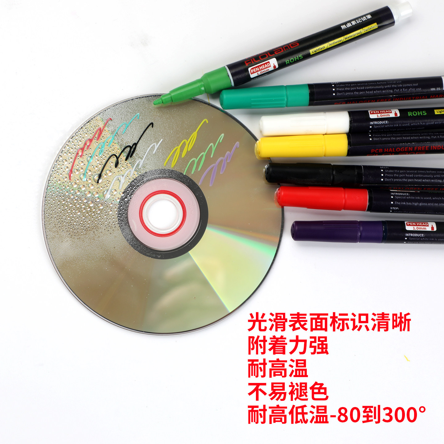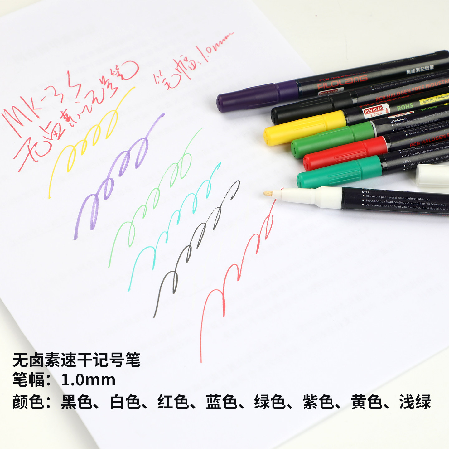 Filolang费洛朗无卤素记号笔MK-3S环保无尘笔PCB版防水不褪色速干耐高温250度实验室用细头1MM不锈钢标记笔