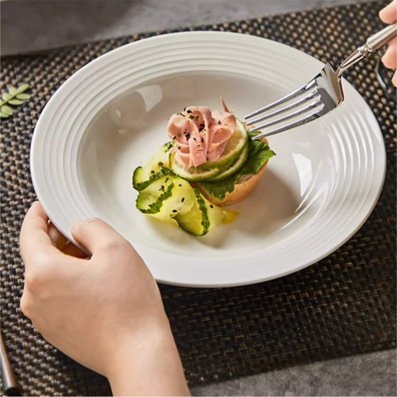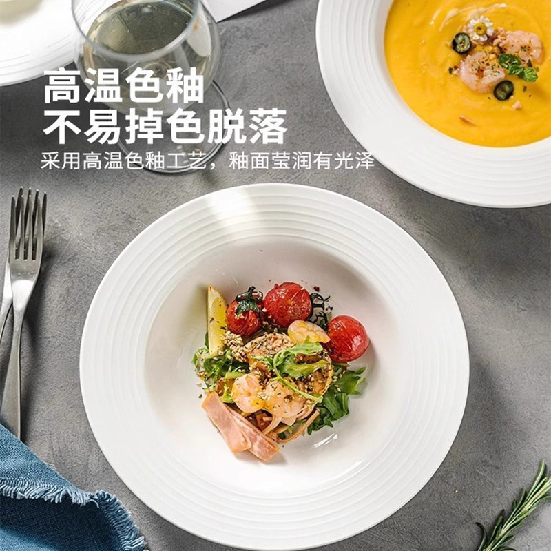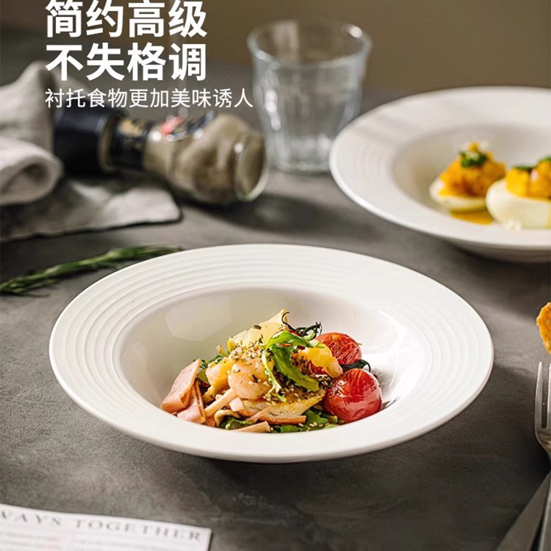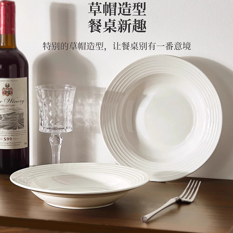 白色草帽盘深盘意面盘子高级感陶瓷沙拉西餐餐盘轻奢碗碟餐具菜盘