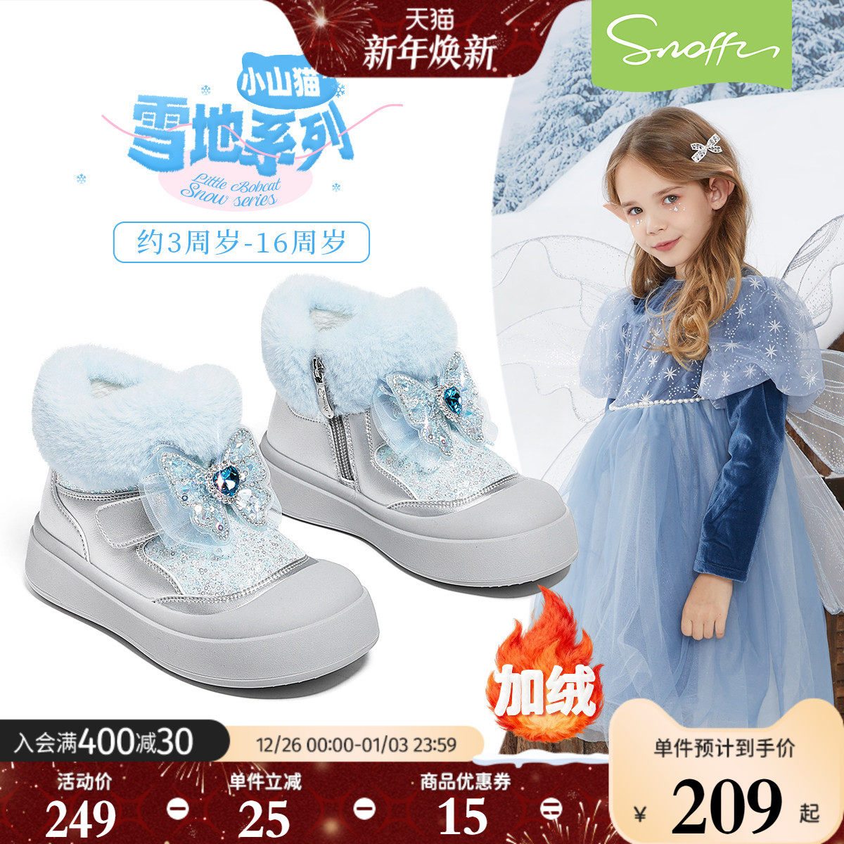 斯纳菲女童雪地靴冬季新款小女孩水晶公主鞋加厚保暖高帮运动鞋