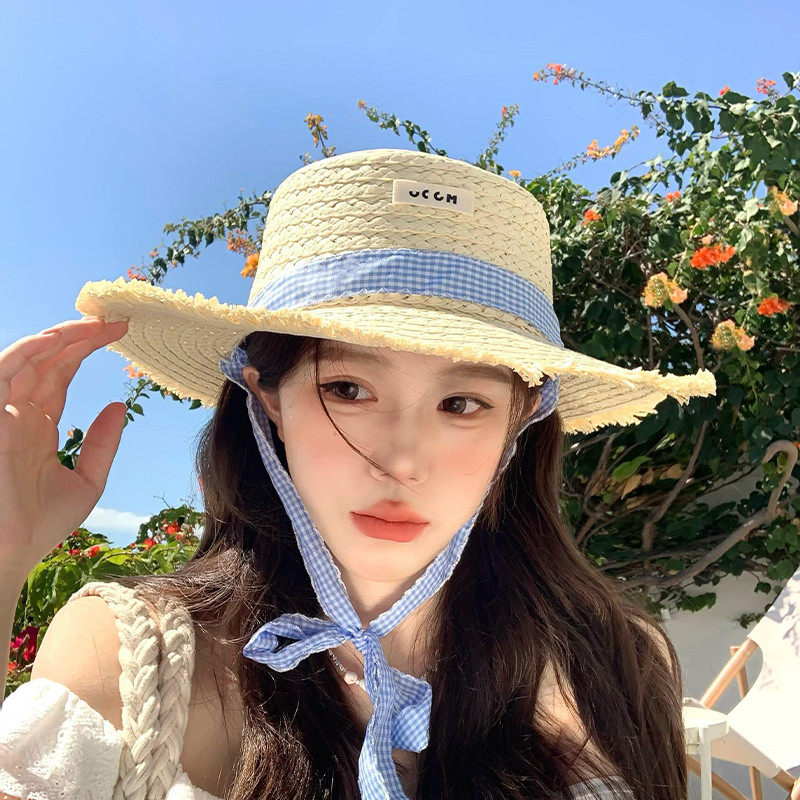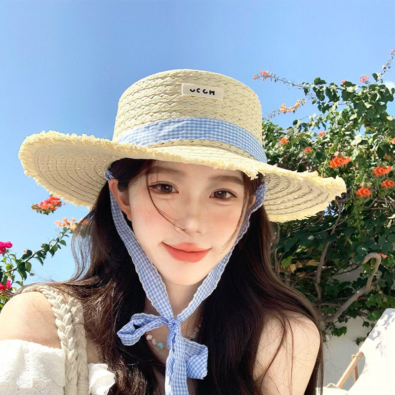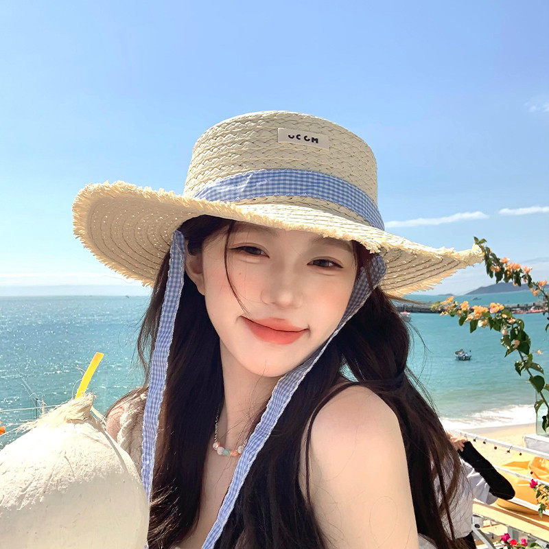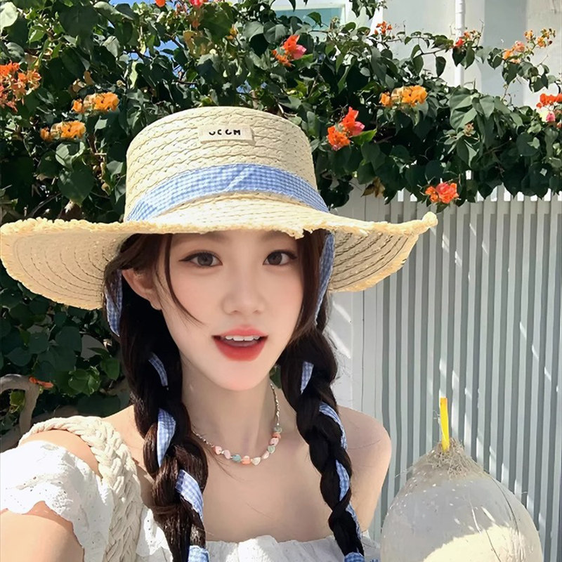 编织草帽子女款夏季防晒帽百搭度假海边显脸小沙滩大帽檐遮阳帽